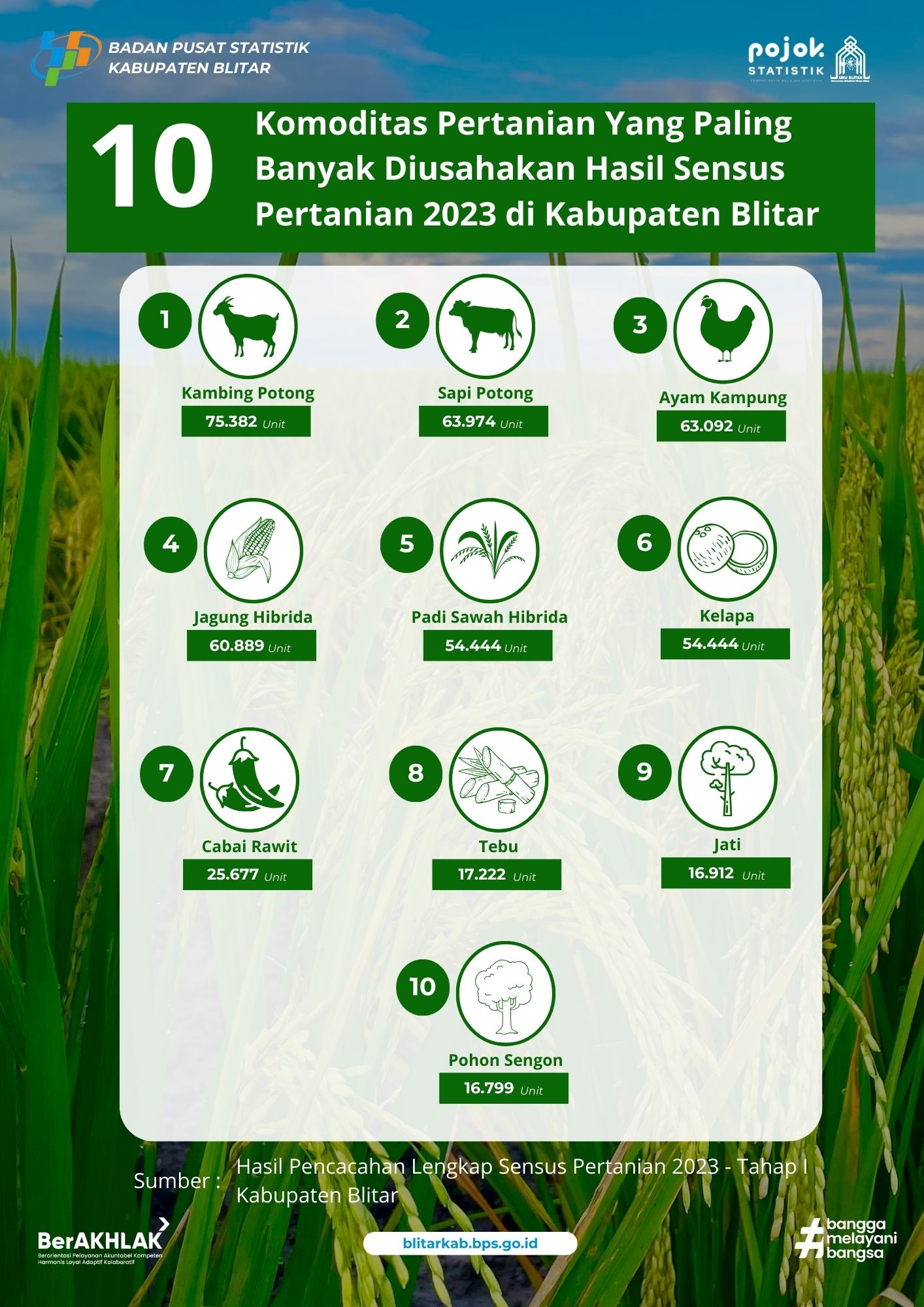 Sepuluh Komoditas Pertanian yang paling banyak diusahakan ditentukan berdasarkan urutan terbanyak dari unit pertanian perorangan (UTP) yang mengusahakan komoditas pertanian tersebut