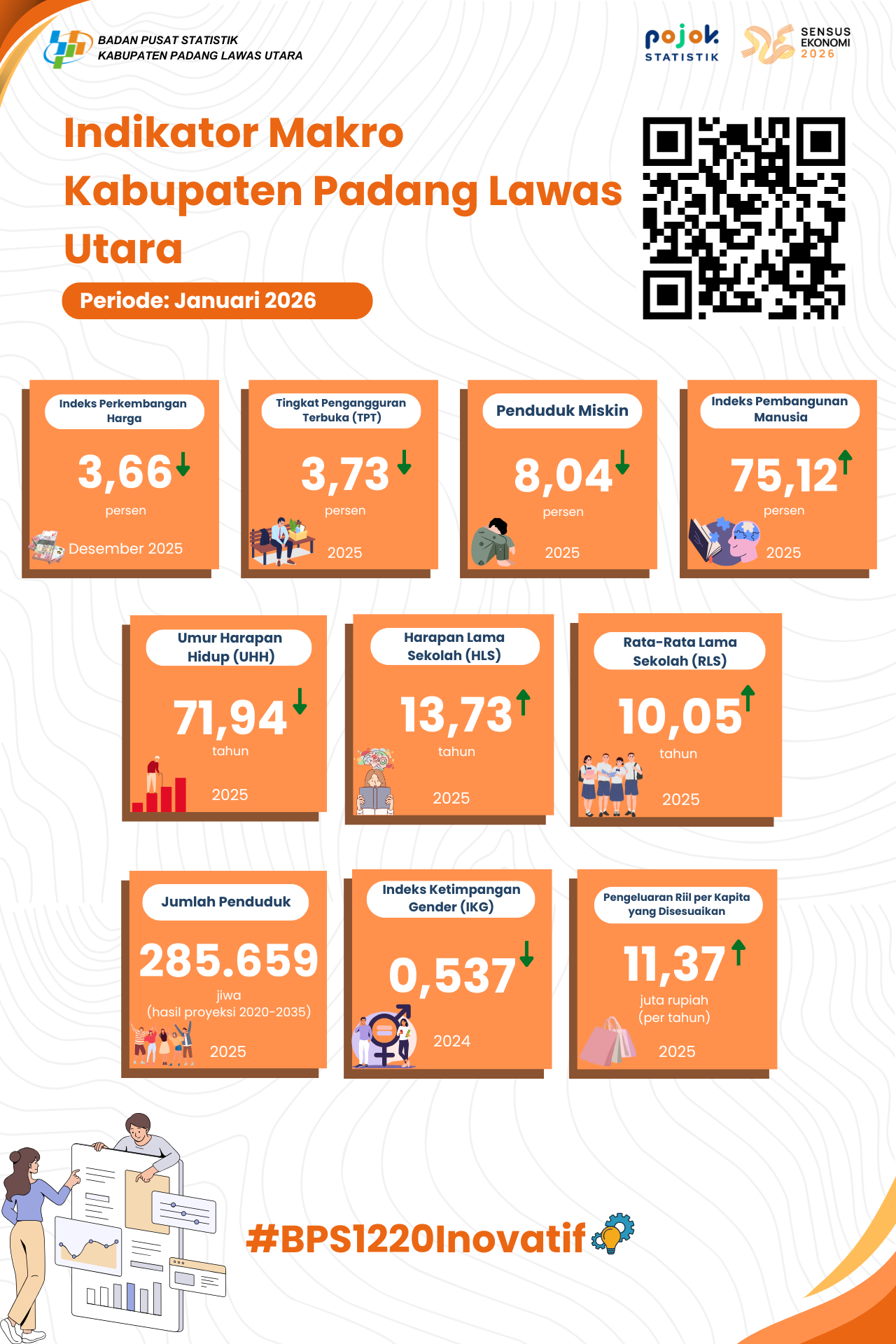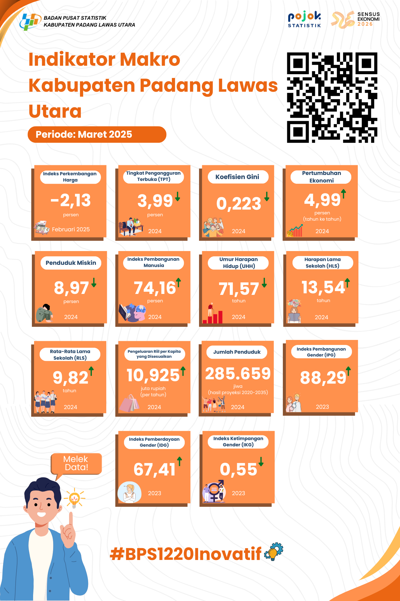 Menampilkan indikator makro yang menjelaskan kondisi sosial ekonomi dari Kabupaten Padang Lawas Utara untuk periode Maret 2025.