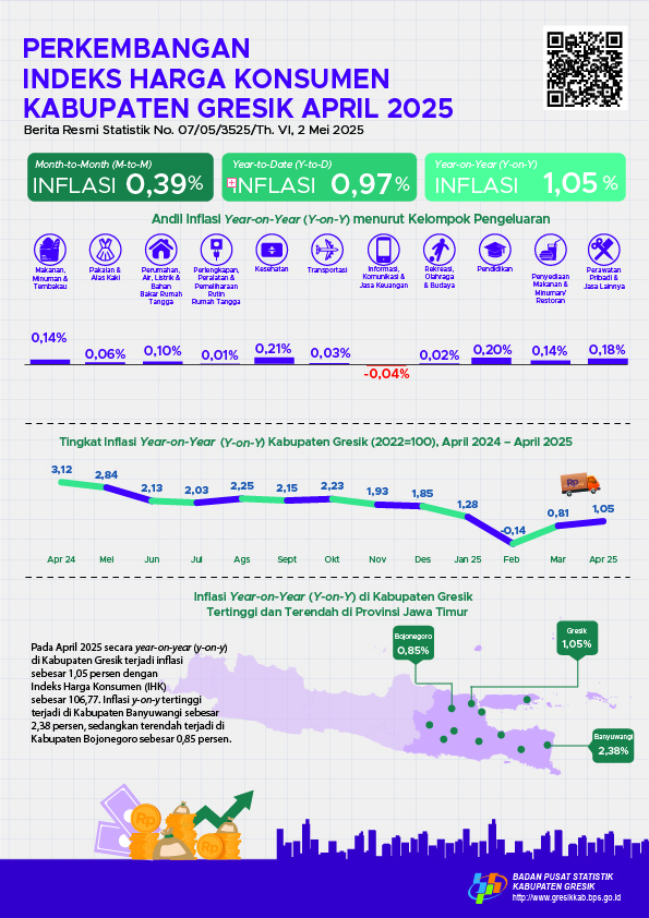 Indeks Harga Konsumen (IHK) Kabupaten Gresik April 2025