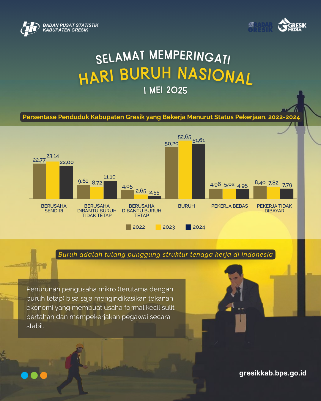 Penduduk menurut Status Pekerjaan di Kabupaten Gresik Tahun 2025, untuk Hari Buruh