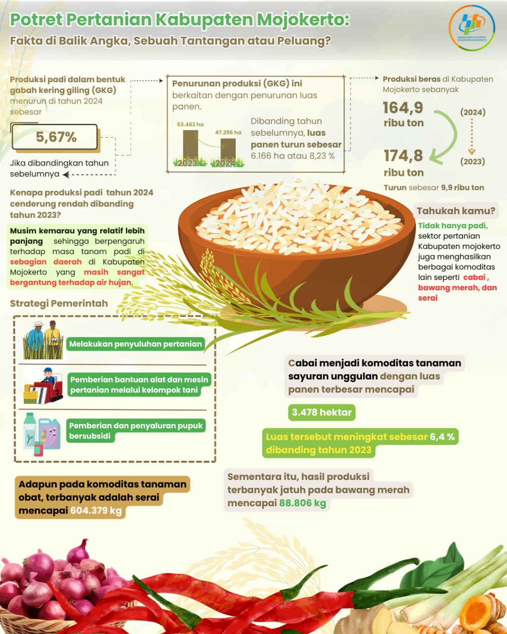 Produksi padi dalam bentuk gabah kering giling (GKG) menurun di tahun 2024 sebesar 5,67