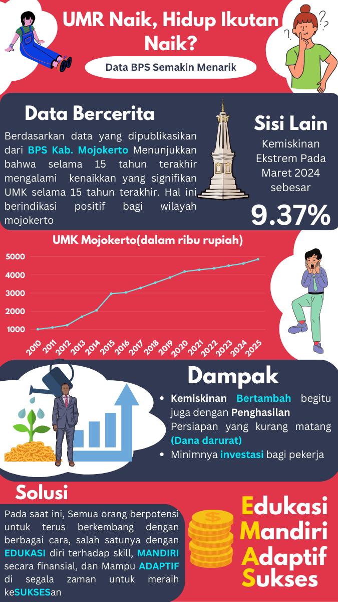 Berdasarkan data yang dipublikasikan dari BPS Kabupaten Mojokerto menunjukkan bahwa selama 15 tahun terakhir mengalami kenaikan yang signifikan UMK selama 15 tahun terakhir.