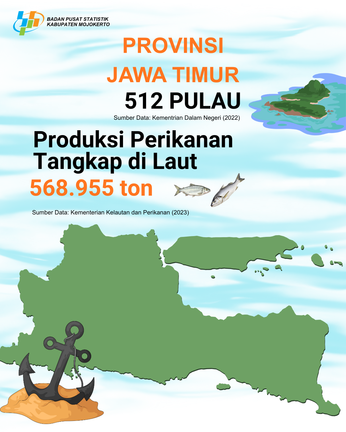 Produksi Perikanan Tangkap di Laut Kabupaten Mojokerto ialah sebesar 568.955 ton