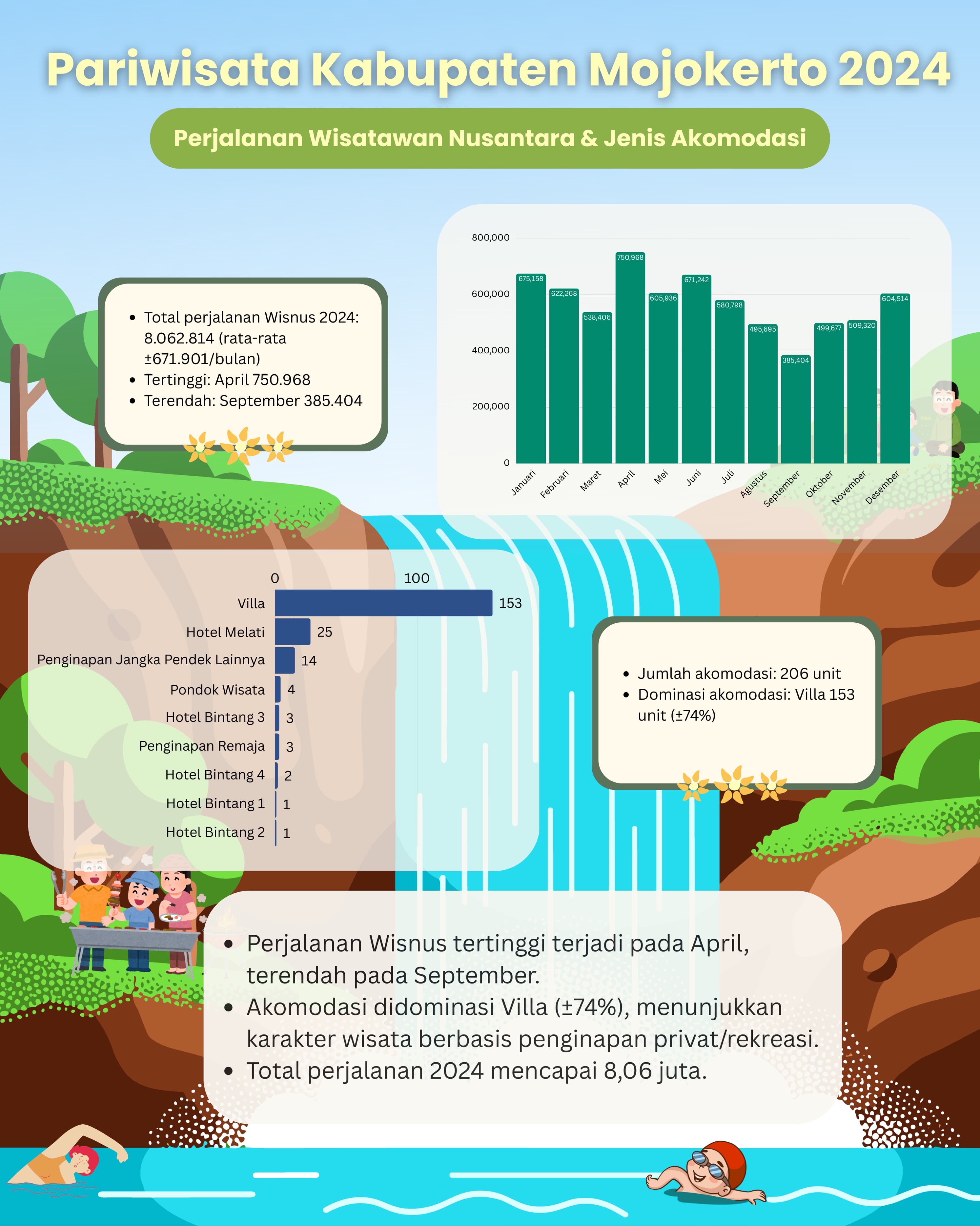 Sepanjang tahun 2024, Kabupaten Mojokerto telah menjadi destinasi favorit bagi lebih dari 8,06 juta wisatawan. Dengan rata-rata 671.901 kunjungan setiap bulannya, Mojokerto membuktikan diri sebagai...