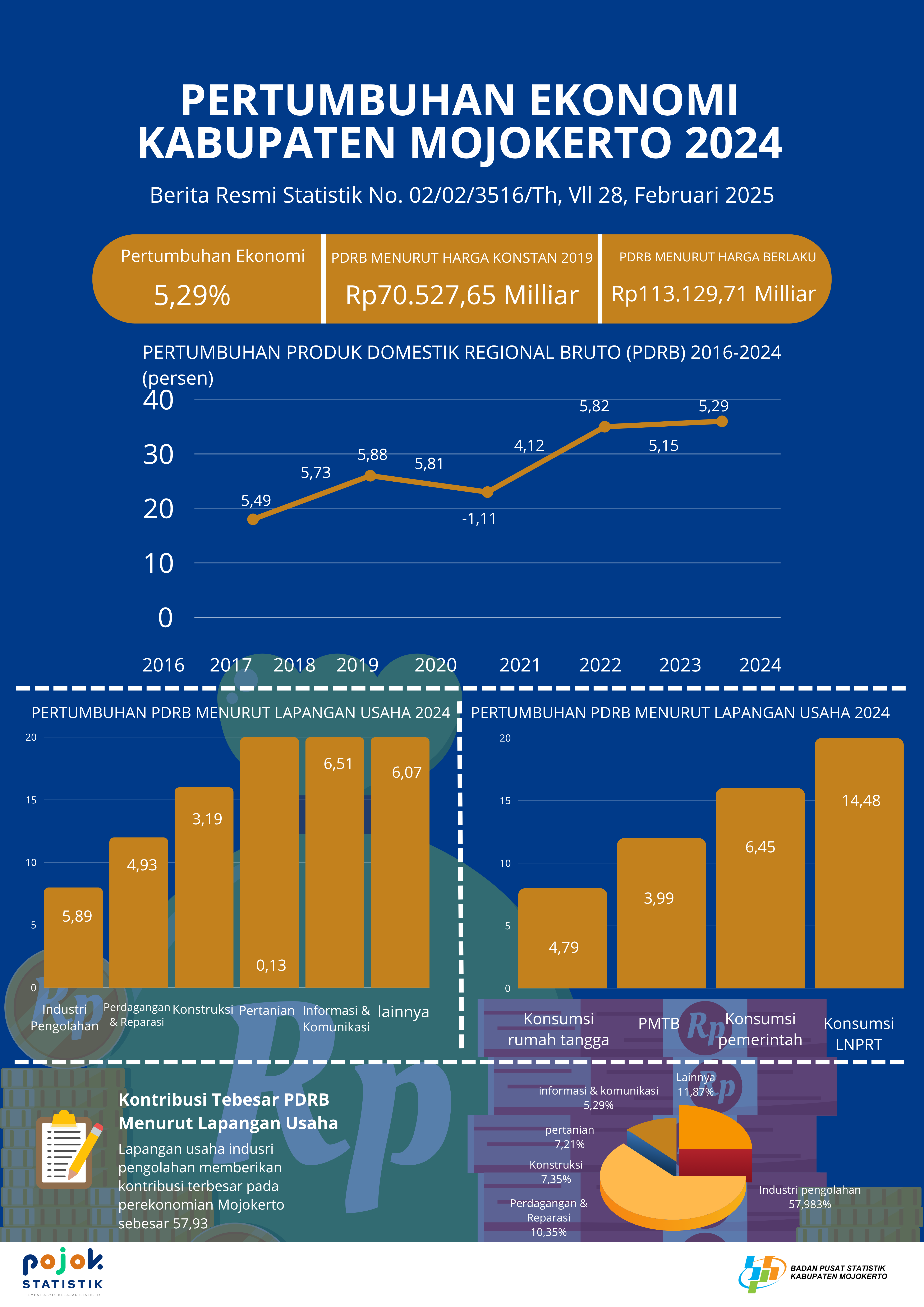 Pertumbuhan Ekonomi Tahun 2024 ialah sebesar 5,29 persen, lebih besar dibandingkan dengan pertumbuhan tahun 2023 yakni sebesar 5,15 persen.