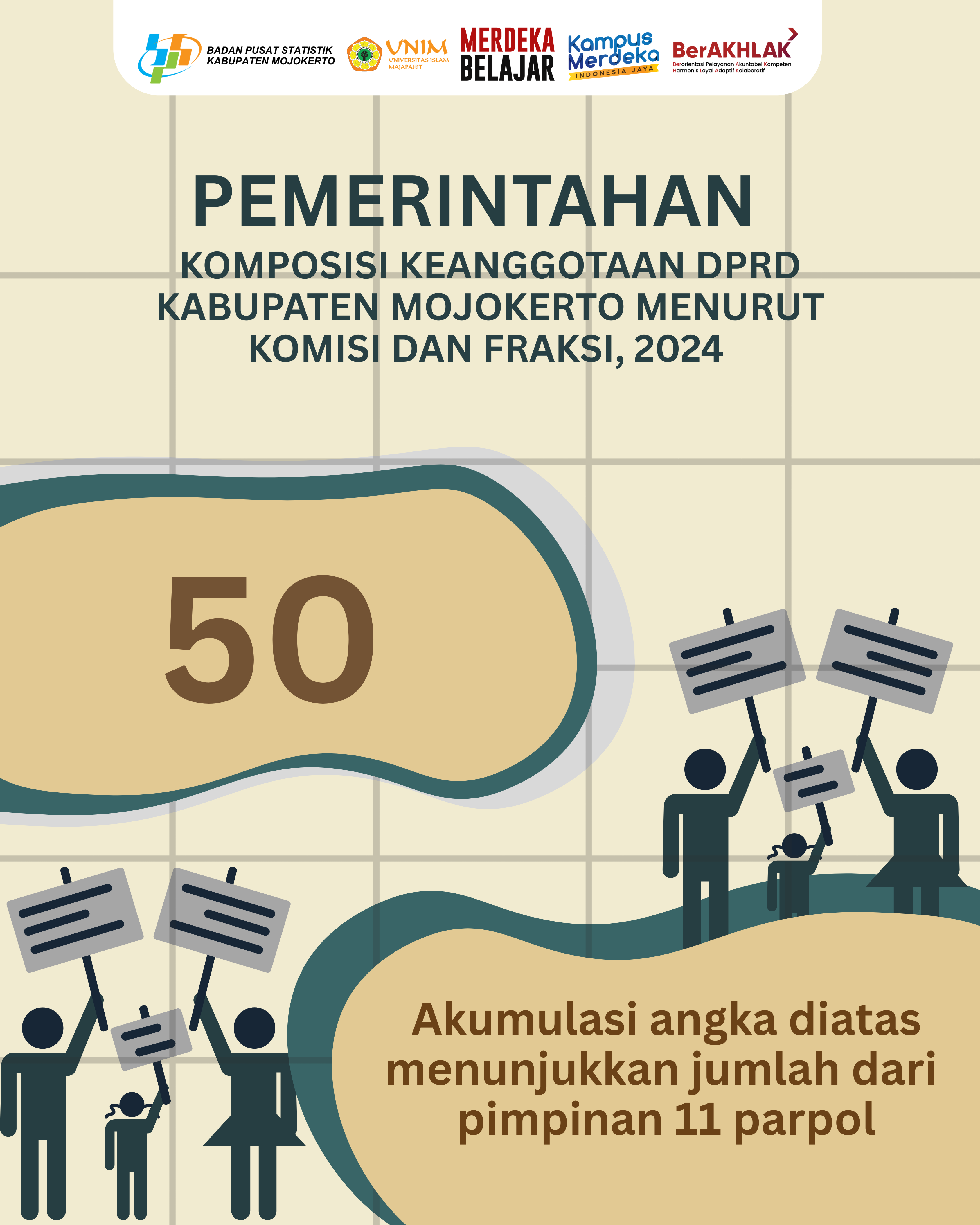 Keanggotaan DPRD Kabupaten Mojokerto 2024 ialah sebanyak 50 orang dimana bersumber dari 11 parpol