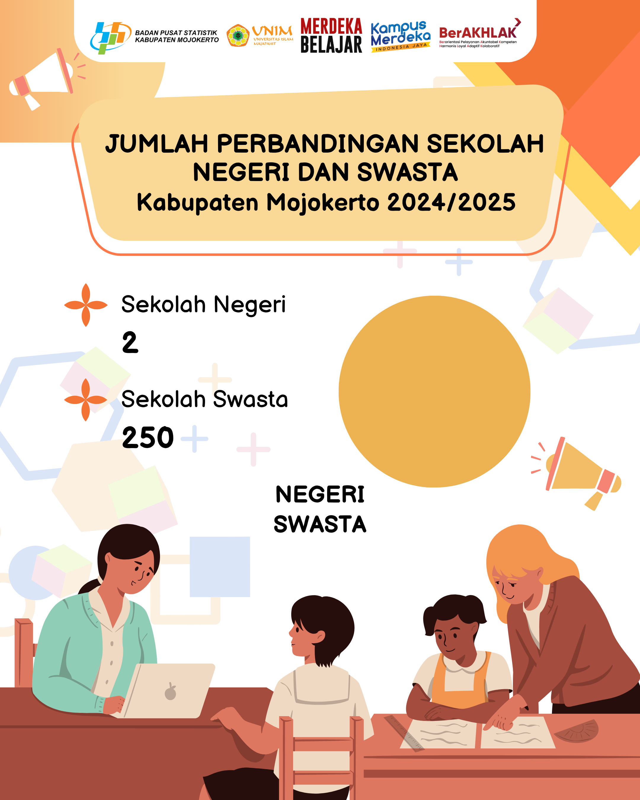 Murid Paud ada sebanyak 15.564 anak dan murid TK sebanyak 21.869 anak. Sedangkan Murid SD sebanyak 59.143 anak, murid SMP 21.869 anak. Murid SMA sebanyak...