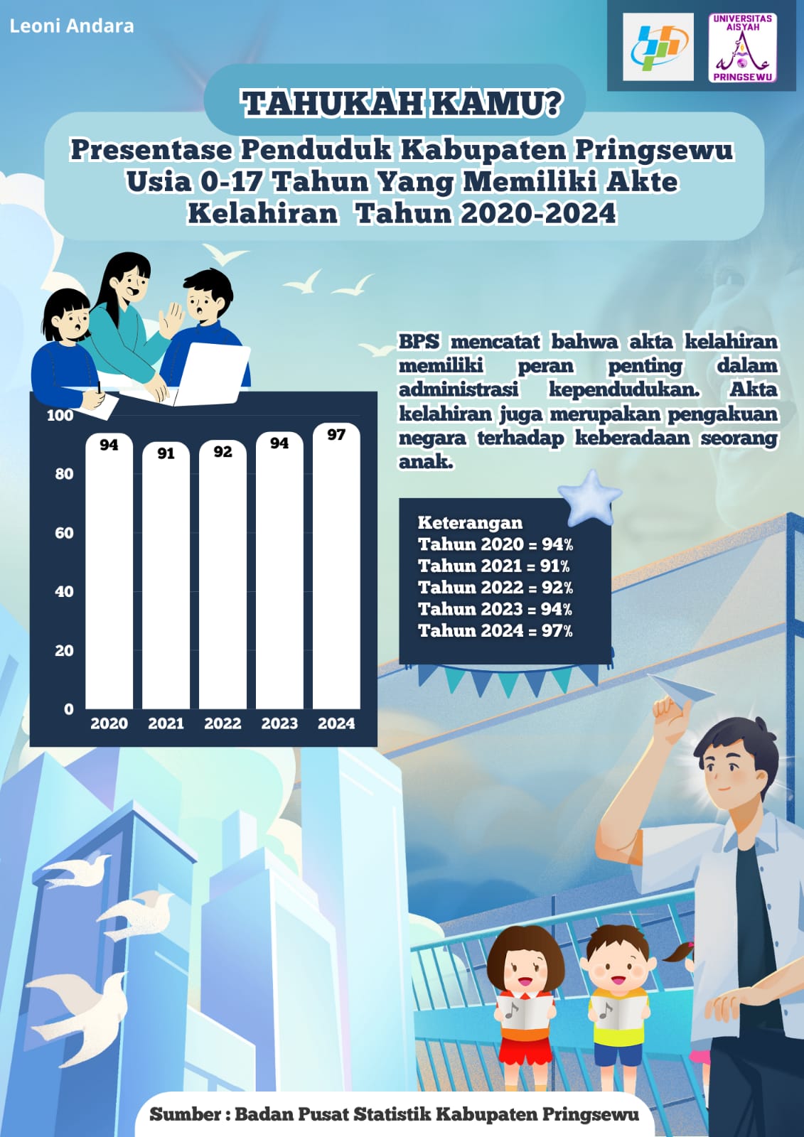 Presentase Penduduk Kabupaten Pringsewu Usia 0-17 Tahun yang Memiliki Akte Kelahiran Tahun 2022-2024
