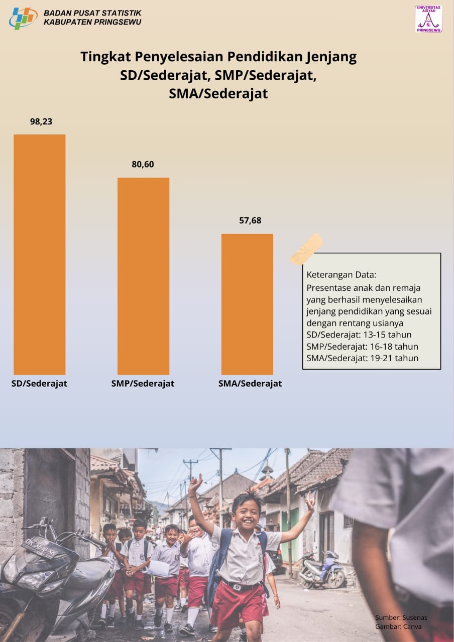Tingkat Penyelesaian Pendidikan Jenjang Sd/Sederajat,SMP/Sederajat,SMA/Sederajat Kabupaten Pringsewu Tahun 2023
