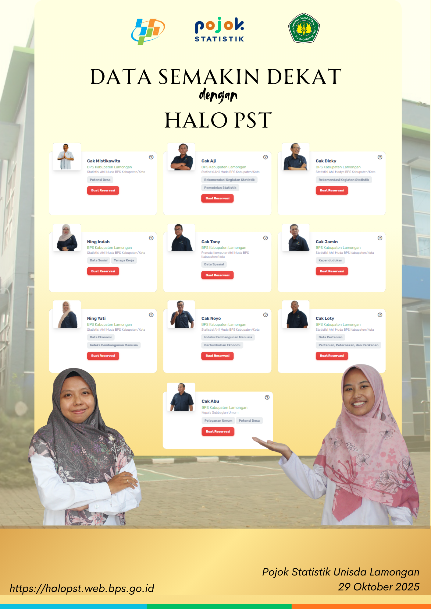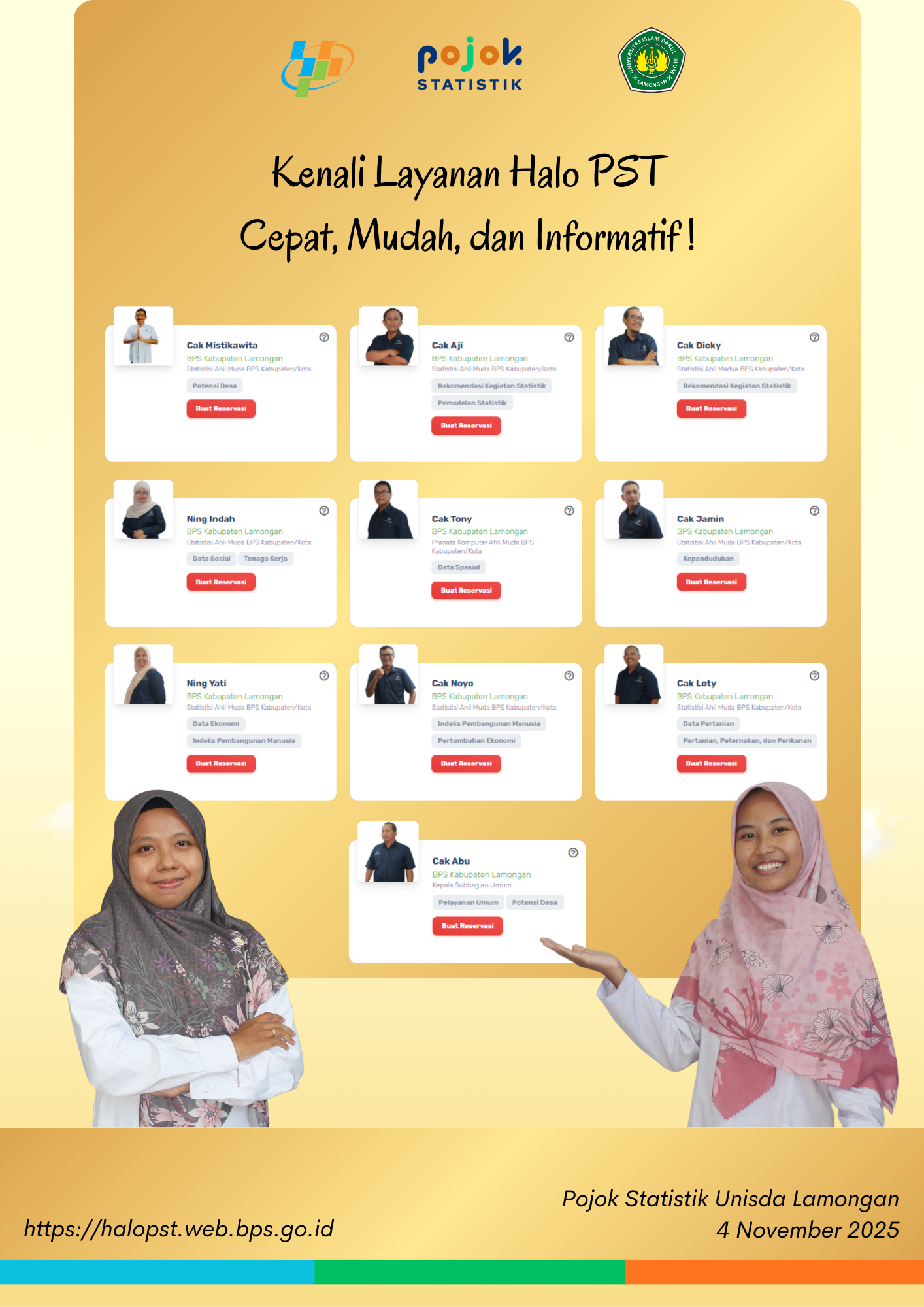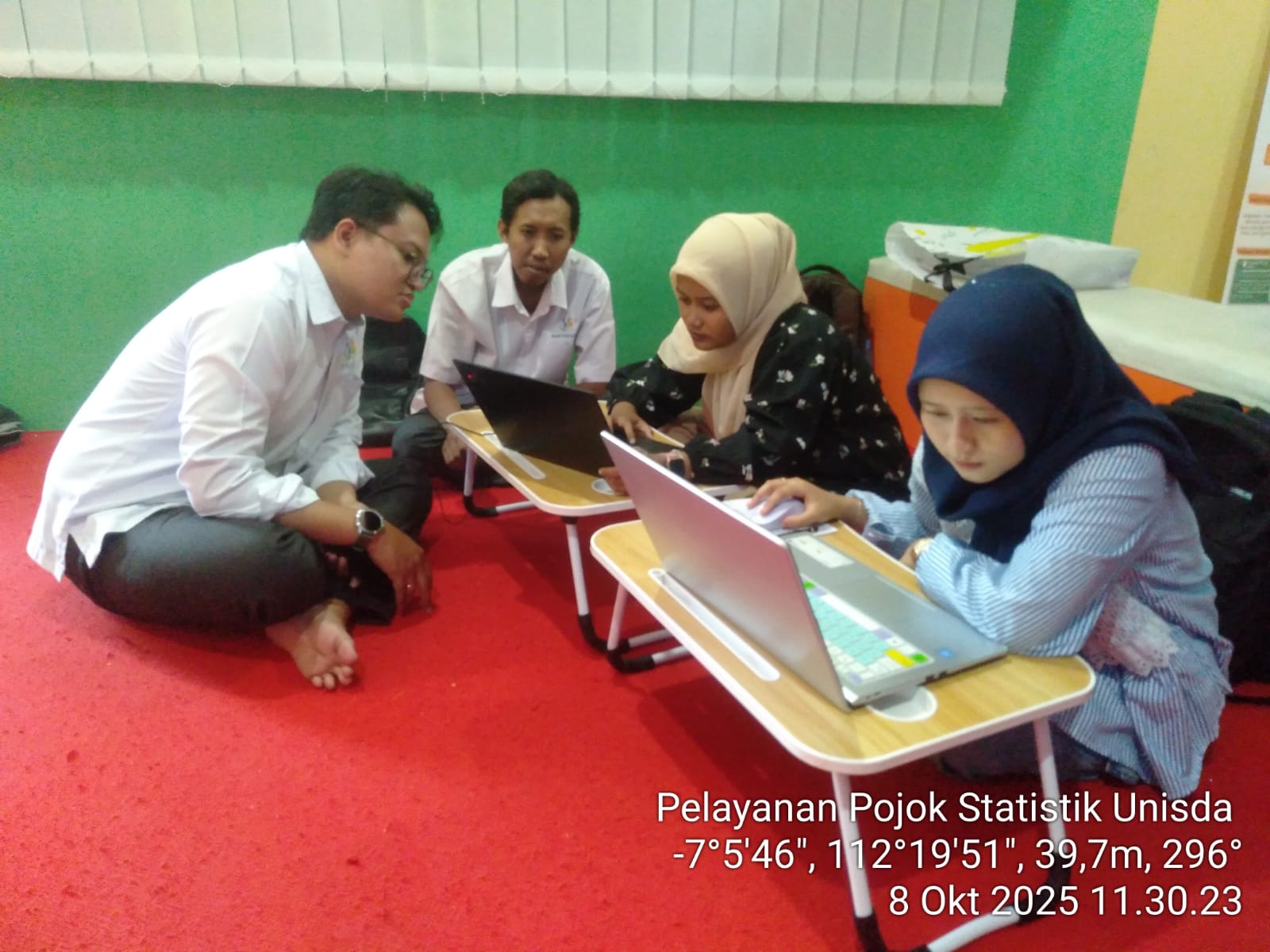 Kolaborasi Pojok Statistik Unisda dengan Desa Cantik Desa Sendangagung dalam kegiatan KKN kolaboratif 2025 antara Universitas Islam Darul 'Ulum Lamongan dan Universitas Muhammadiyah Surabaya