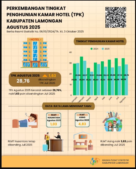 Vidiografis ini berisi perkembangan tingkat penghunian kamar hotel bulan Agustus 2025
