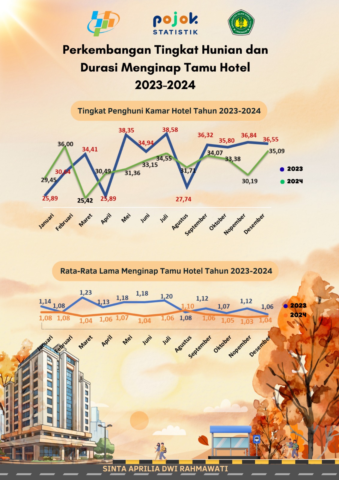 tingkat hunian dan lama menginap tamu hotel berubah antara tahun 2023 dan 2024. Pada 2023, hotel paling ramai di bulan Juli, sementara pada 2024 puncaknya...
