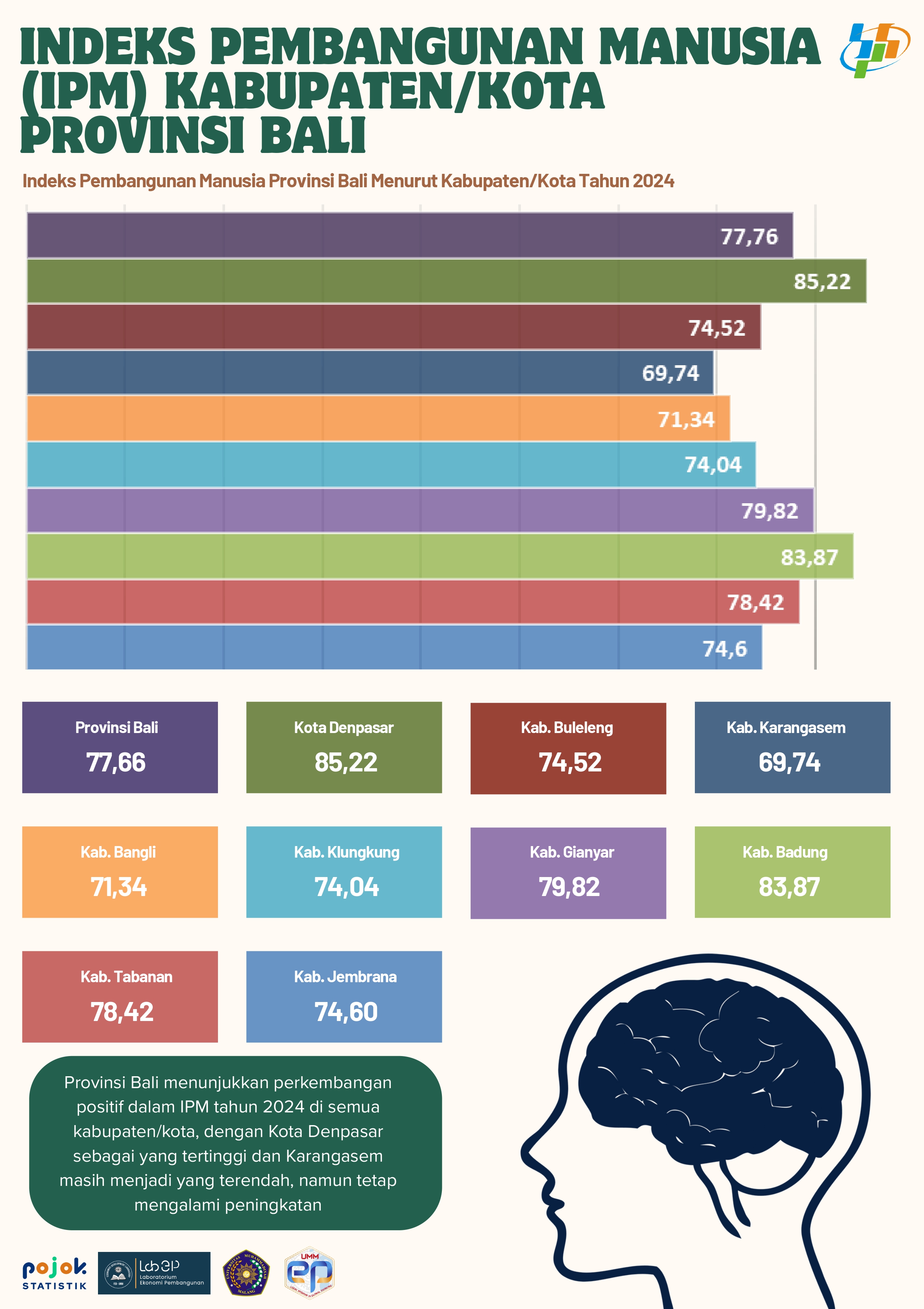Provinsi Bali menunjukkan perkembangan positif dalam IPM tahun 2024 di semua Kabupaten/Kota dengan Kota Denpasar sebagai IPM tertinggi dan Karangasem masih menjadi yang terendah namun...