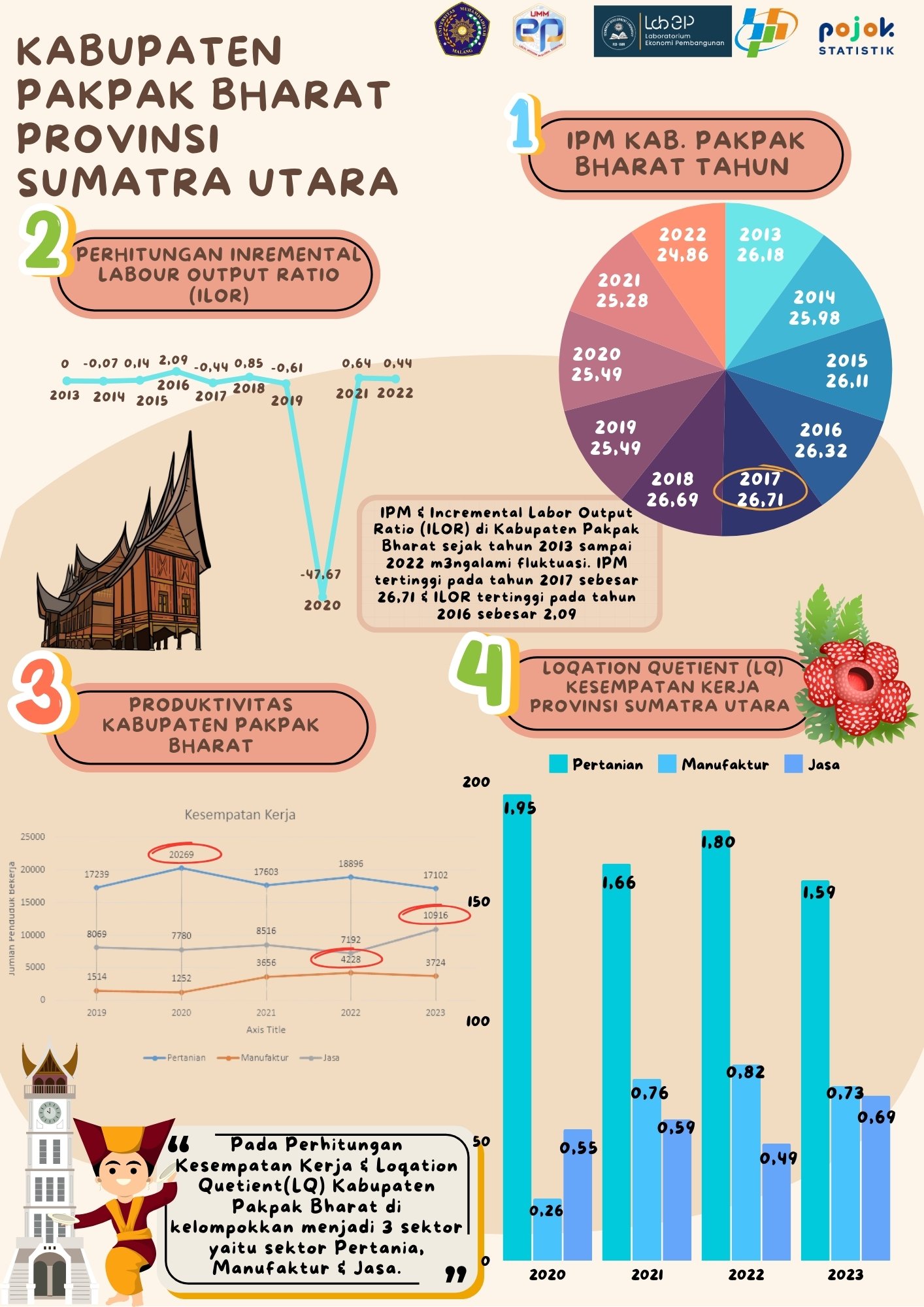 Kondisi ekonomi Kabupaten Pakpak Bharat Provinsi Sumatera Utara dilihat dari ILOR, IPM, Produktivitas dan Nilai LQ