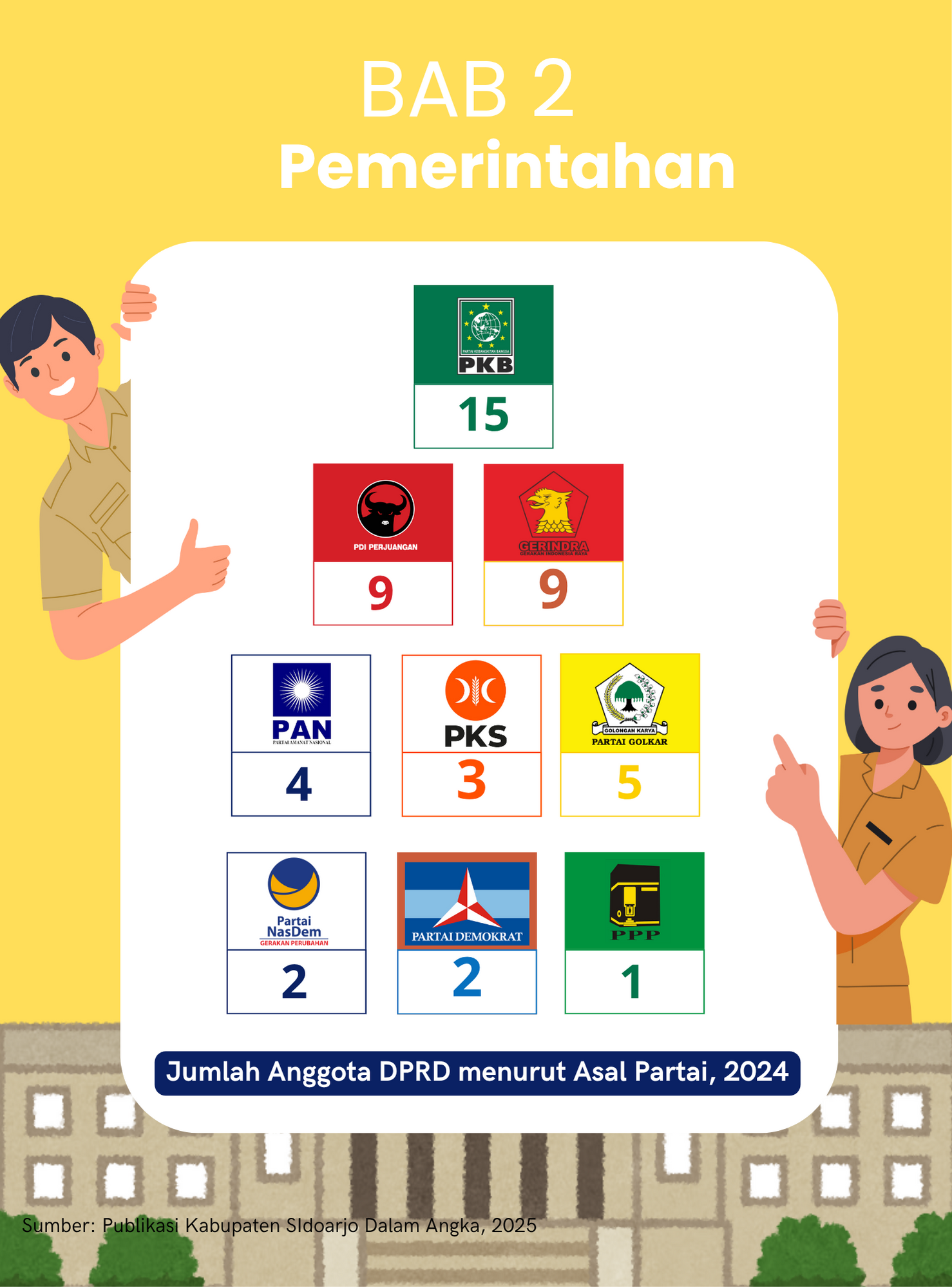 ποΈ BAB 2 β Pemerintahan π¬ Tahukah kamu? DPRD Kabupaten Sidoarjo tahun 2024 terdiri dari berbagai partai politik. Partai dengan kursi terbanyak adalah PKB (15...