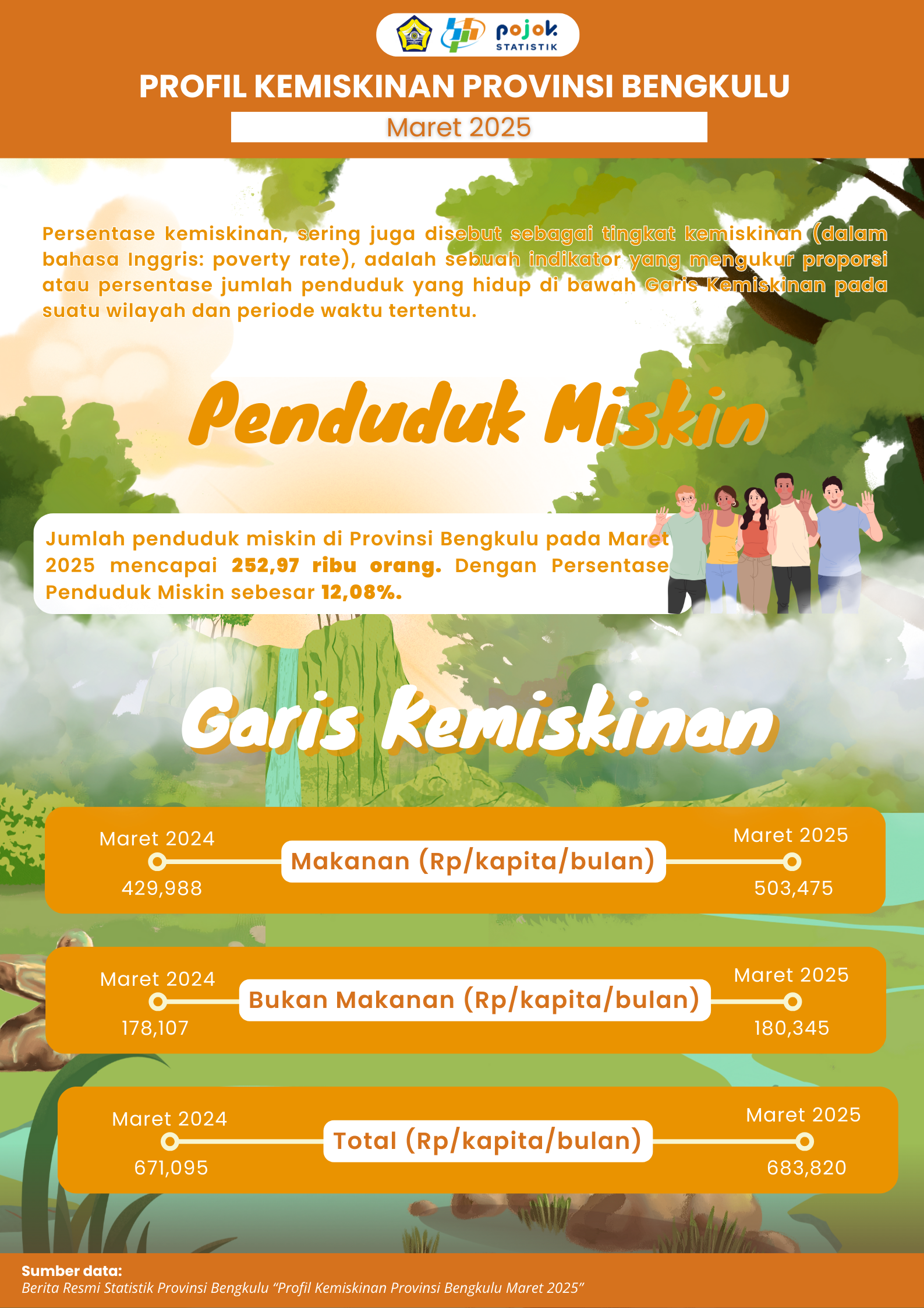 Infografis ini memuat informasi mengenai Profil Kemiskinan Provinsi Bengkulu per Maret 2025. Secara garis besar, infografis ini menjelaskan bahwa pada periode tersebut, jumlah penduduk miskin...