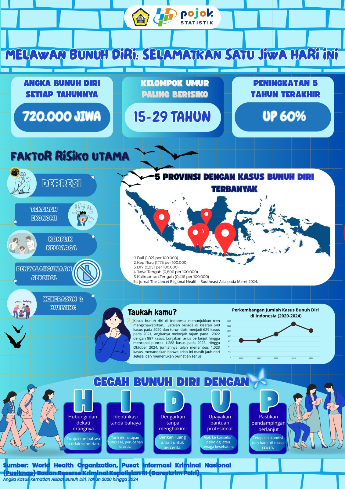 Setiap tahun sekitar 720.000 orang meninggal akibat bunuh diri, dengan usia 15–29 tahun sebagai kelompok paling berisiko dan tren global meningkat hingga 60% dalam lima...