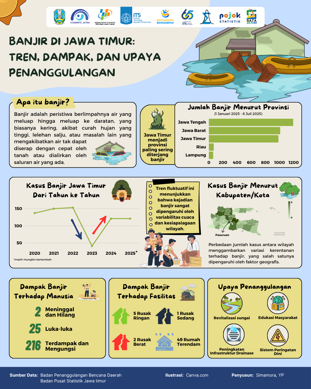 infografis ini menyajikan data terkait kasus banjir di Jawa Timur
