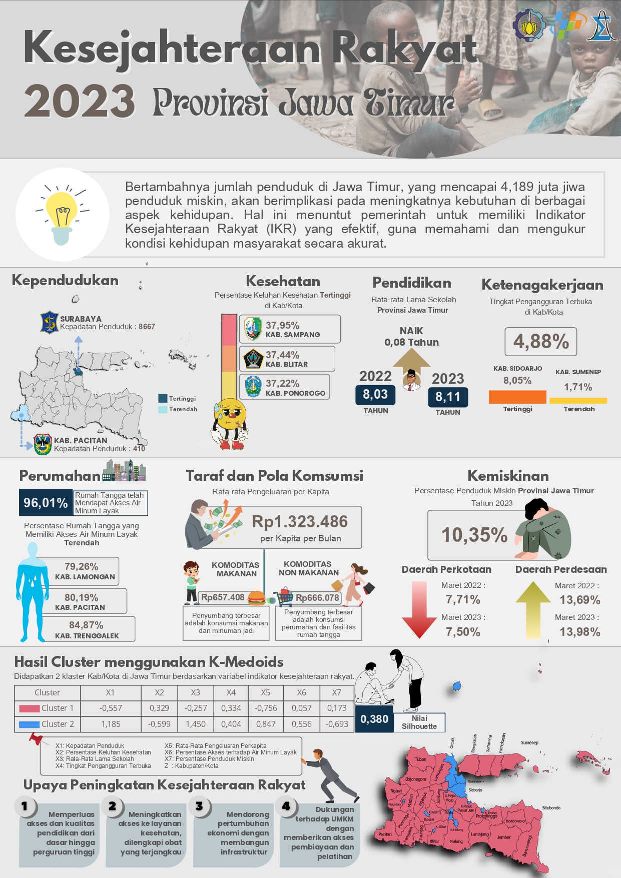 Infografis ini menyajikan beberapa indikator terkait kesejahteraan rakyat (kependudukan, kesehatan, pendidikan, ketenagakerjaan, dll.)