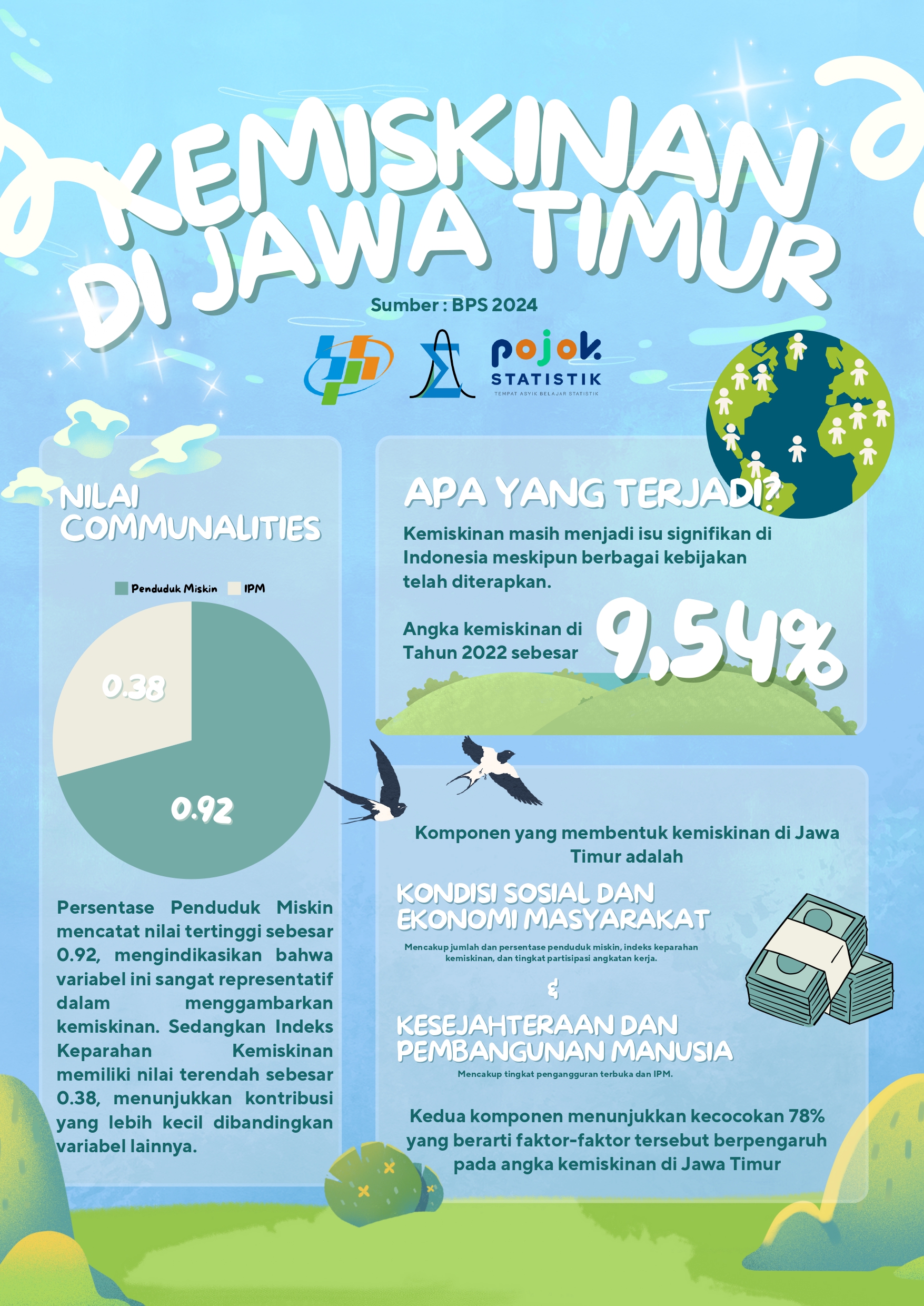 Infografis ini menyajikan isu kemiskinan di jawa timur, persentase penduduk miskin