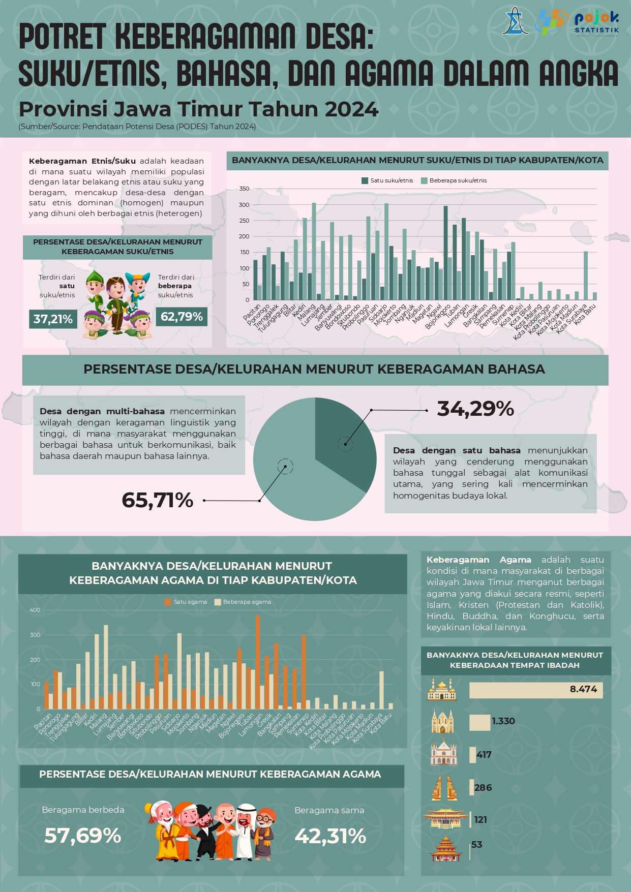 Infografis ini menyajikan data presentase kelurahan/desa menurut keberagaman bahasa dan agama, dll