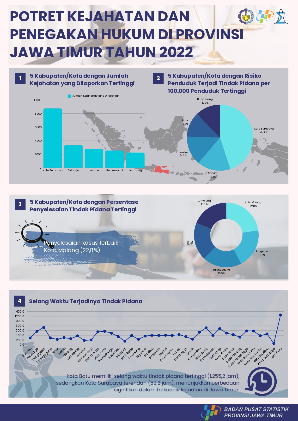 Infografis ini menyajikan data kab/kota dengan jumlah kejahatan yang dilaporkan tertinggi