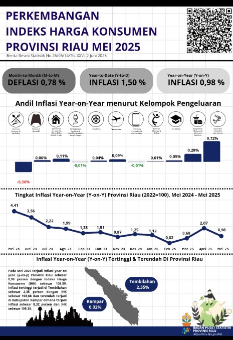 Perkembangan Indeks Harga Konsumen Prov Riau Mei 2025