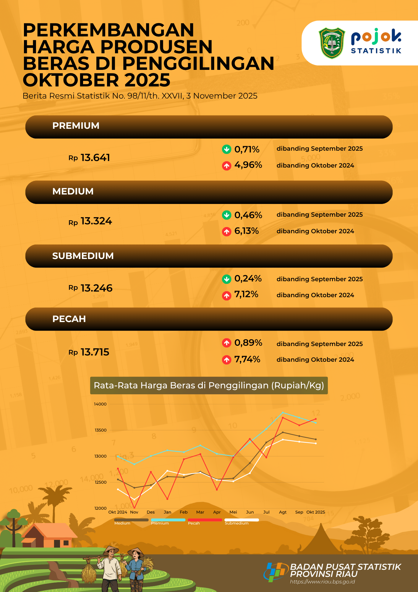 Perkembangan Harga Produsen Beras di Penggilingan Oktober 2025