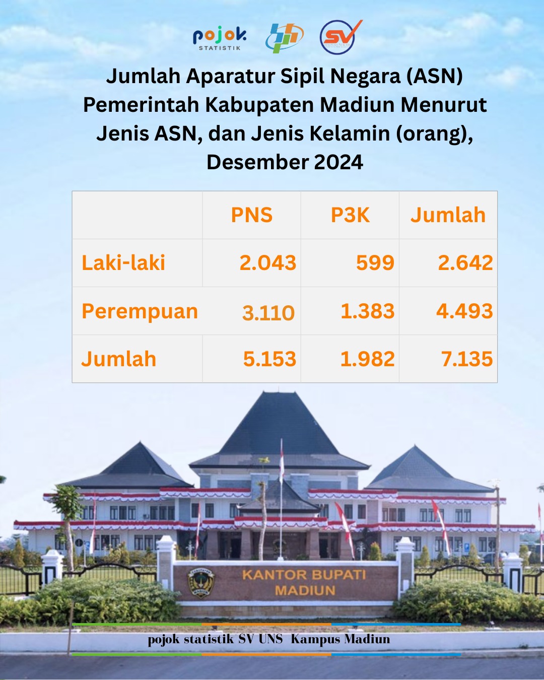 ASN di Kabupaten Madiun ternyata banyak juga! Sampai Desember 2024, total ada 7.135 Aparatur Sipil Negara (ASN) yang aktif di lingkungan Pemkab Madiun. Rinciannya: 🔹...