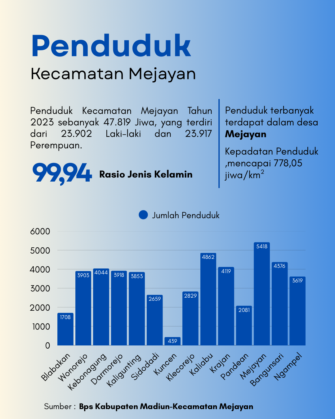 Jumlah penduduk di Kecamatan Mejayan berupa diagram