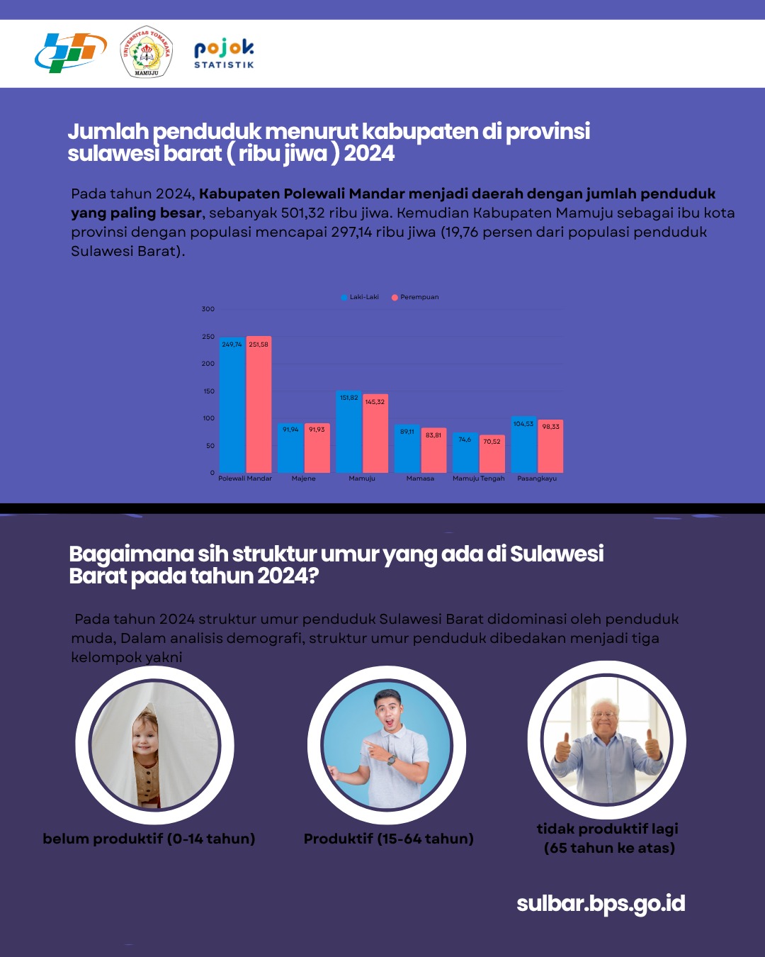 Jumlah Penduduk Provinsi Sulawesi Barat Berdasarkan Jenis Kelemin Tahun 2024