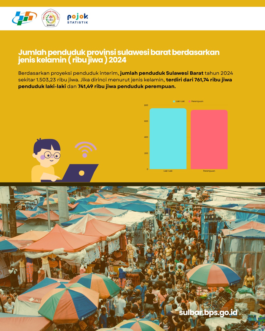 Jumlah Penduduk Provinsi Sulawesi barat Berdasarkan Jenis Kelamin Tahun 2024