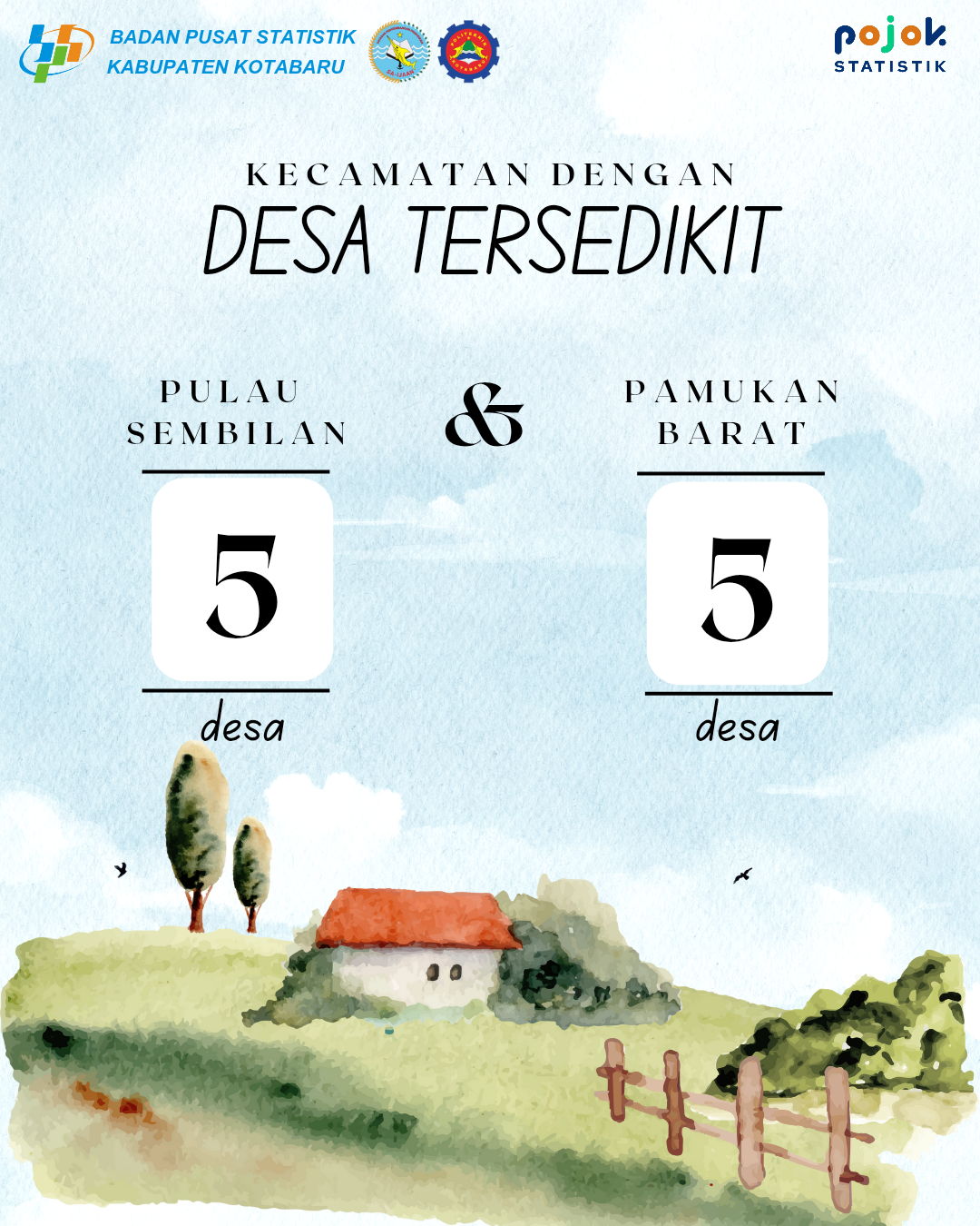 "Selanjutnya, Kecamatan dengan desa paling sedikit jatuh pada dua Kecamatan. Yaitu Kecamatan Pulau Sembilan dan Kecamatan Pamukan Barat yang masing masing sebanyak 5 desa #CintaData...