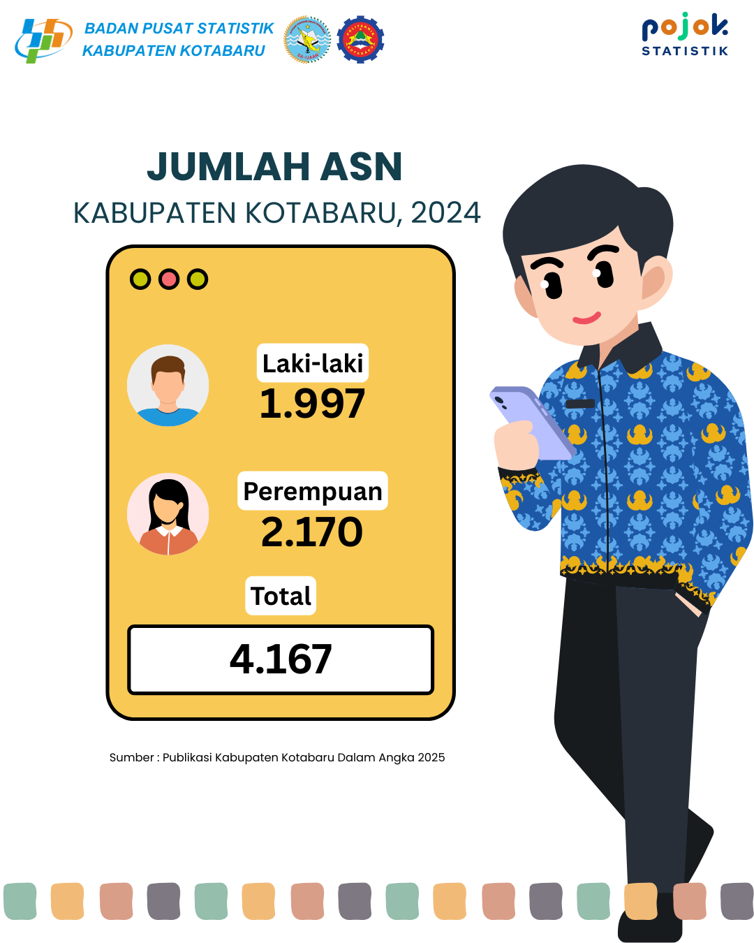 Berapa banyak ASN di Kabupaten Kotabaru? Berdasarkan data Badan Kepegawaian dan Pengembangan SDM Kabupaten Kotabaru, total 4.167 orang ASN bekerja di Kabupaten Kotabaru. #CintaData #Promosi...