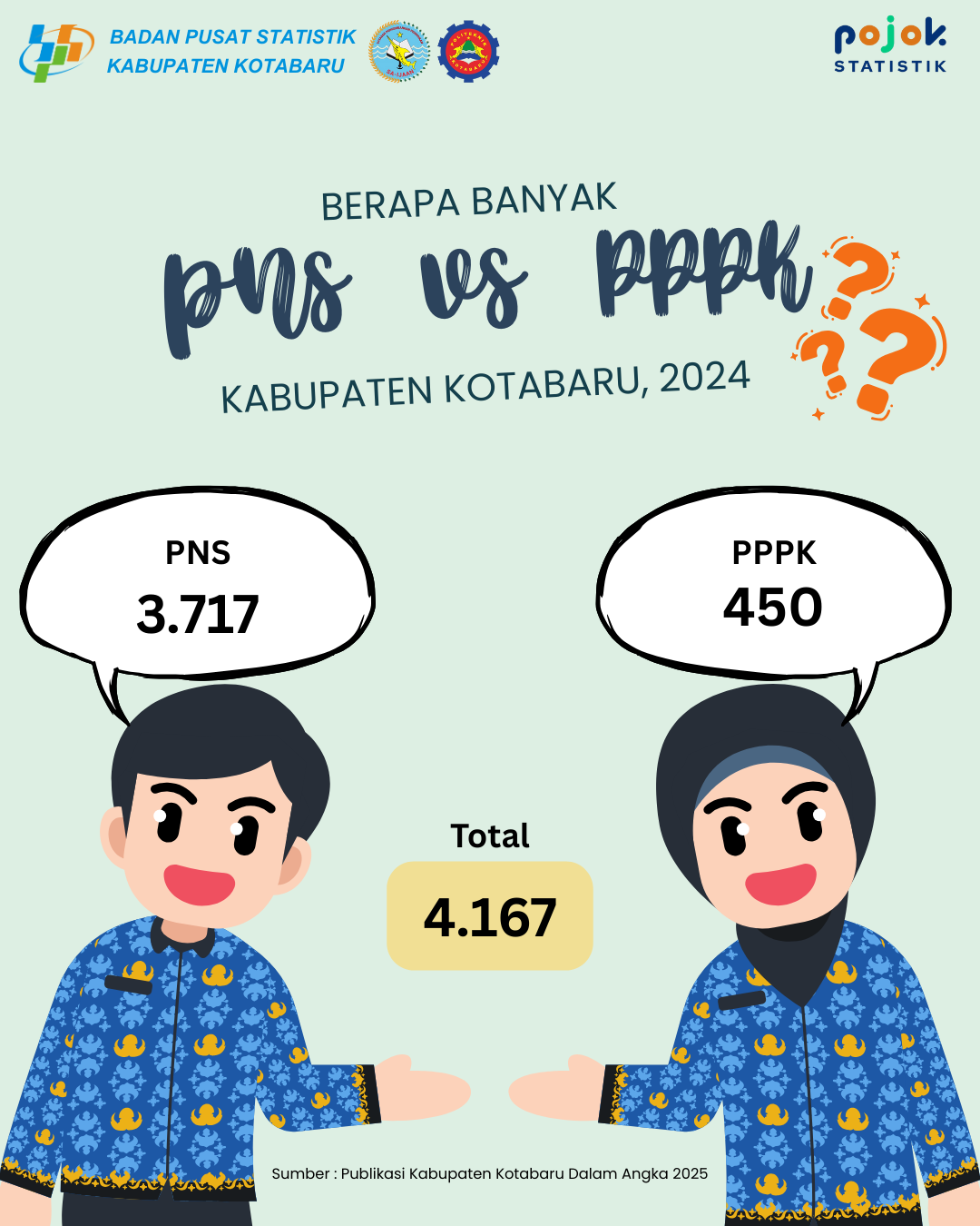 "Berapa banyak PNS dan PPPK di Kabupaten Kotabaru? Berdasarkan data Badan Kepegawaian dan Pengembangan SDM Kabupaten Kotabaru, total PNS sebanyak 3,717 orang dan PPPK sebanyak...