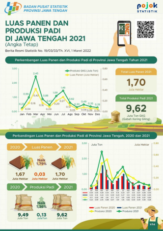 Luas Panen dan Produksi Padi di Jawa Tengah 2021