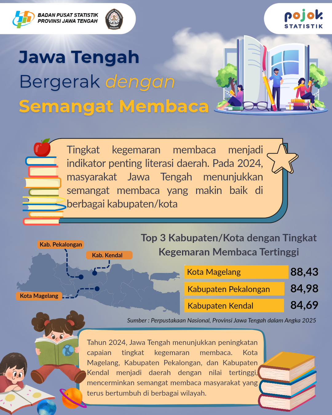 Tingkat kegemaran membaca menjadi indikator penting literasi daerah. Pada 2024, masyarakat Jawa Tengah menunjukkan semangat membaca yang makin baik.