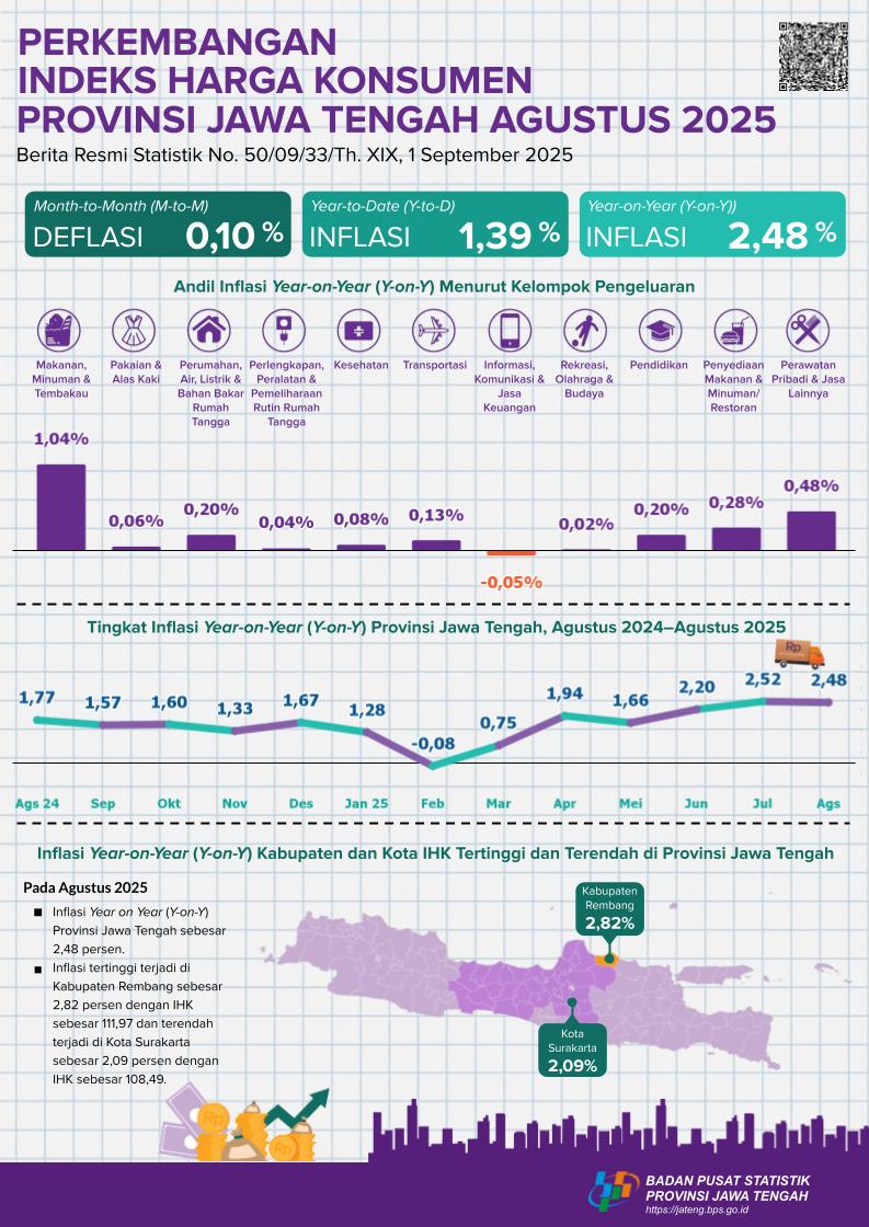 Perkembangan Indeks Harga Konsumen Provinsi Jawa Tengah Agustus 2025 berdasarkan Berita Resmi Statistik No. 50/09/33/Th. XIX, 1 September 2025
