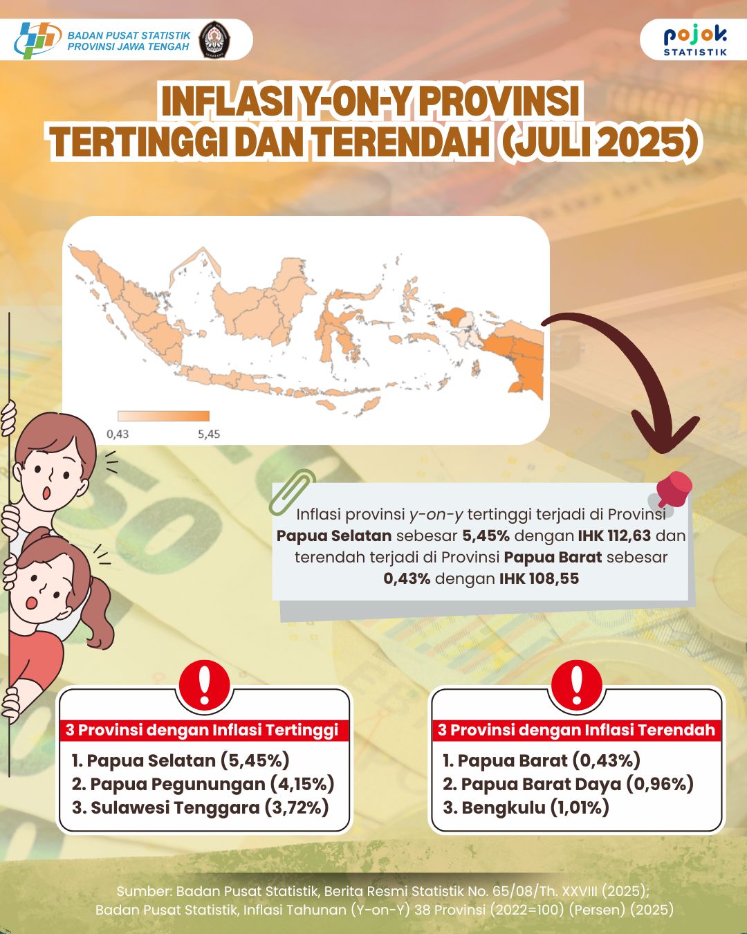 Inflasi Year on Year Provinsi Tertinggi dan Terendah (Juli 2025)