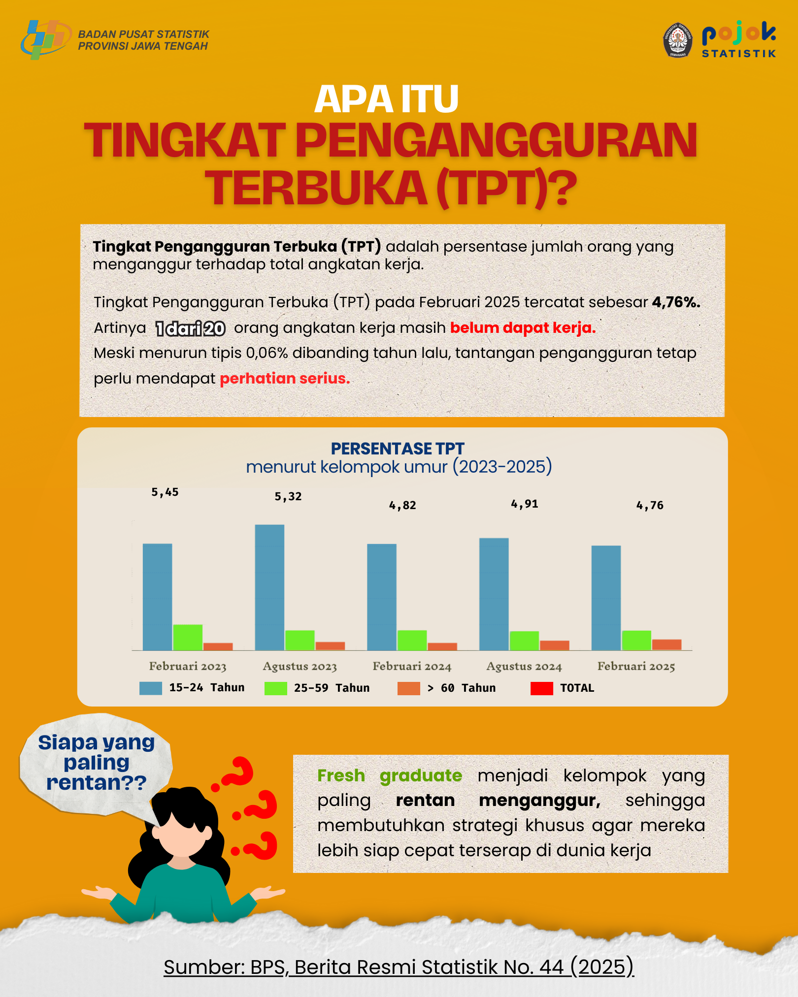 TPT adalah persentase jumlah orang yang menganggur terhadap total angkatan kerja.