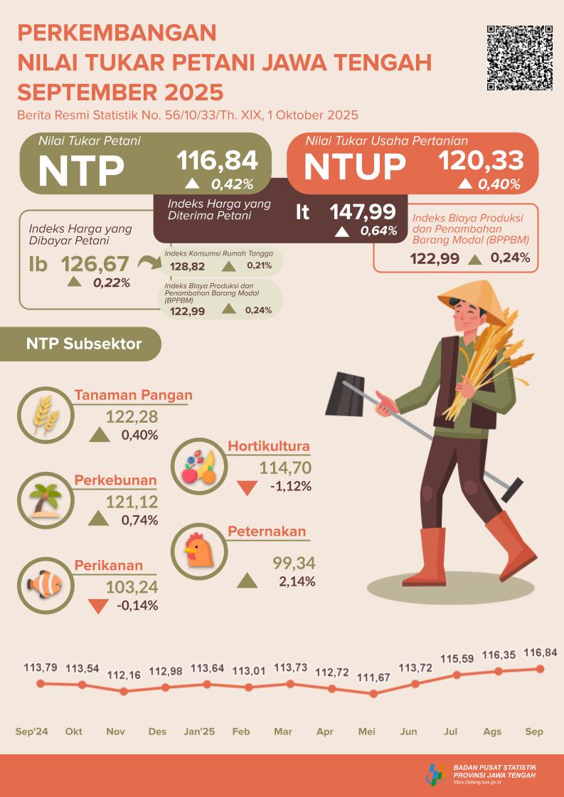 Perkembangan Nilai Tukar Petani Jawa Tengah September 2025 berdasarkan Berita Resmi Statistik No. 56/10/33/Th.XIX, 1 Oktober 2025
