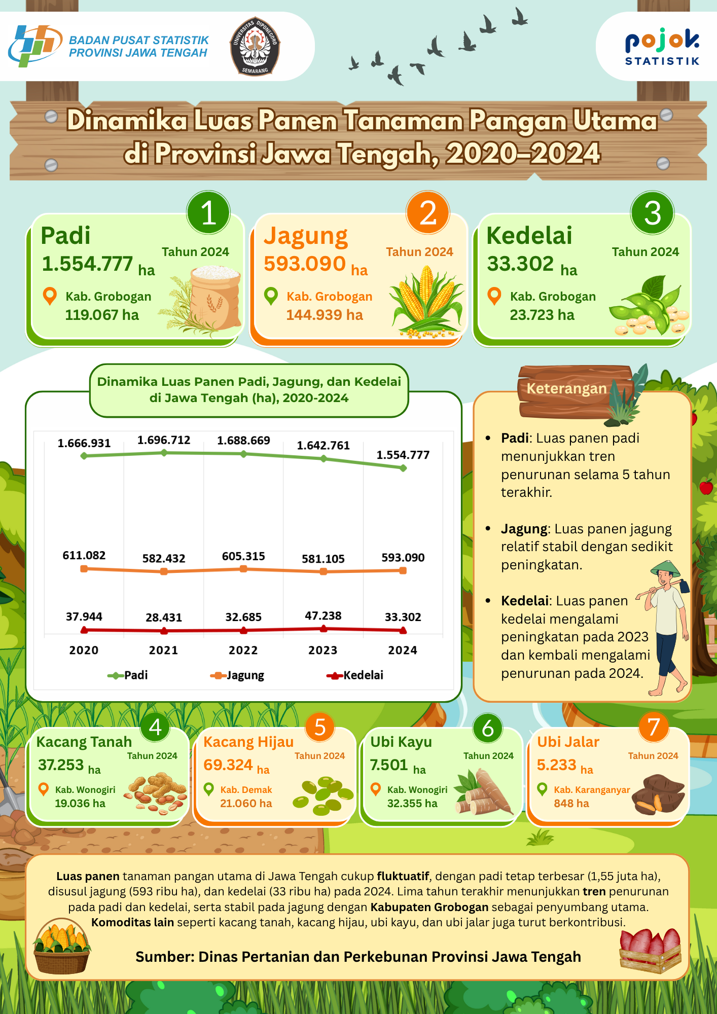 Dinamika Luas Panen Tanaman Pangan Utama di Provinsi Jawa Tengah, 2020-2024