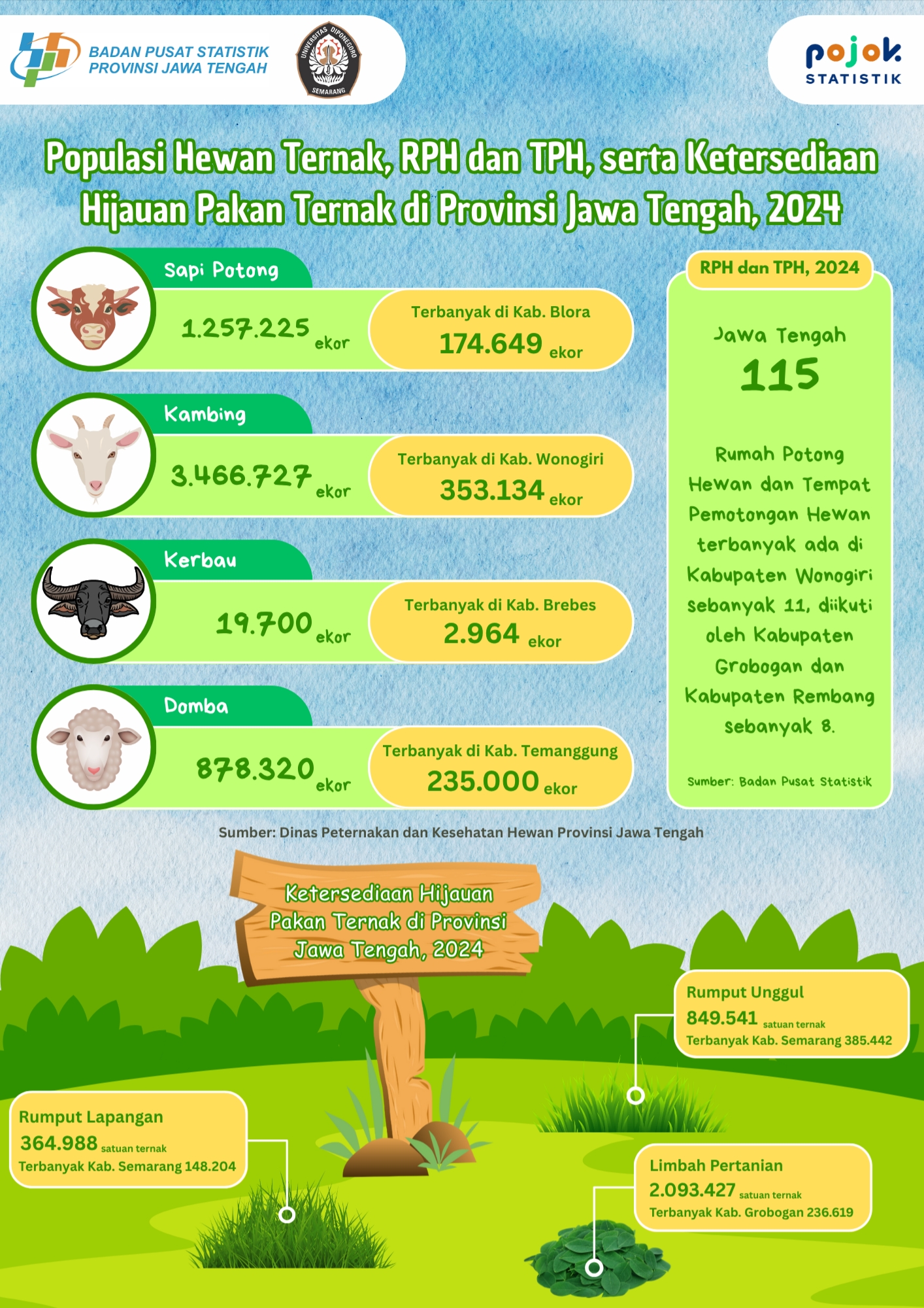 Populasi Hewan Ternak, RPH dan TPH, serta ketersediaan Hijauan Pakan Ternak di Provinsi Jawa Tengah, 2024