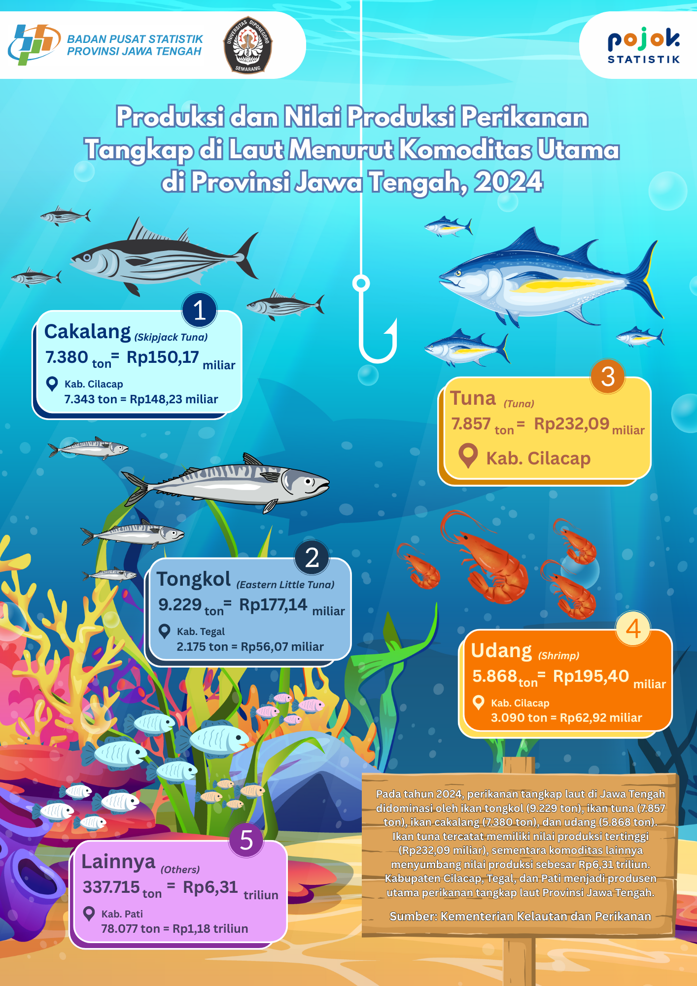 Produksi dan Nilai Produksi Perikanan Tangkap di Laut Menurut Komoditas Utama di Provinsi Jawa Tengah, 2024