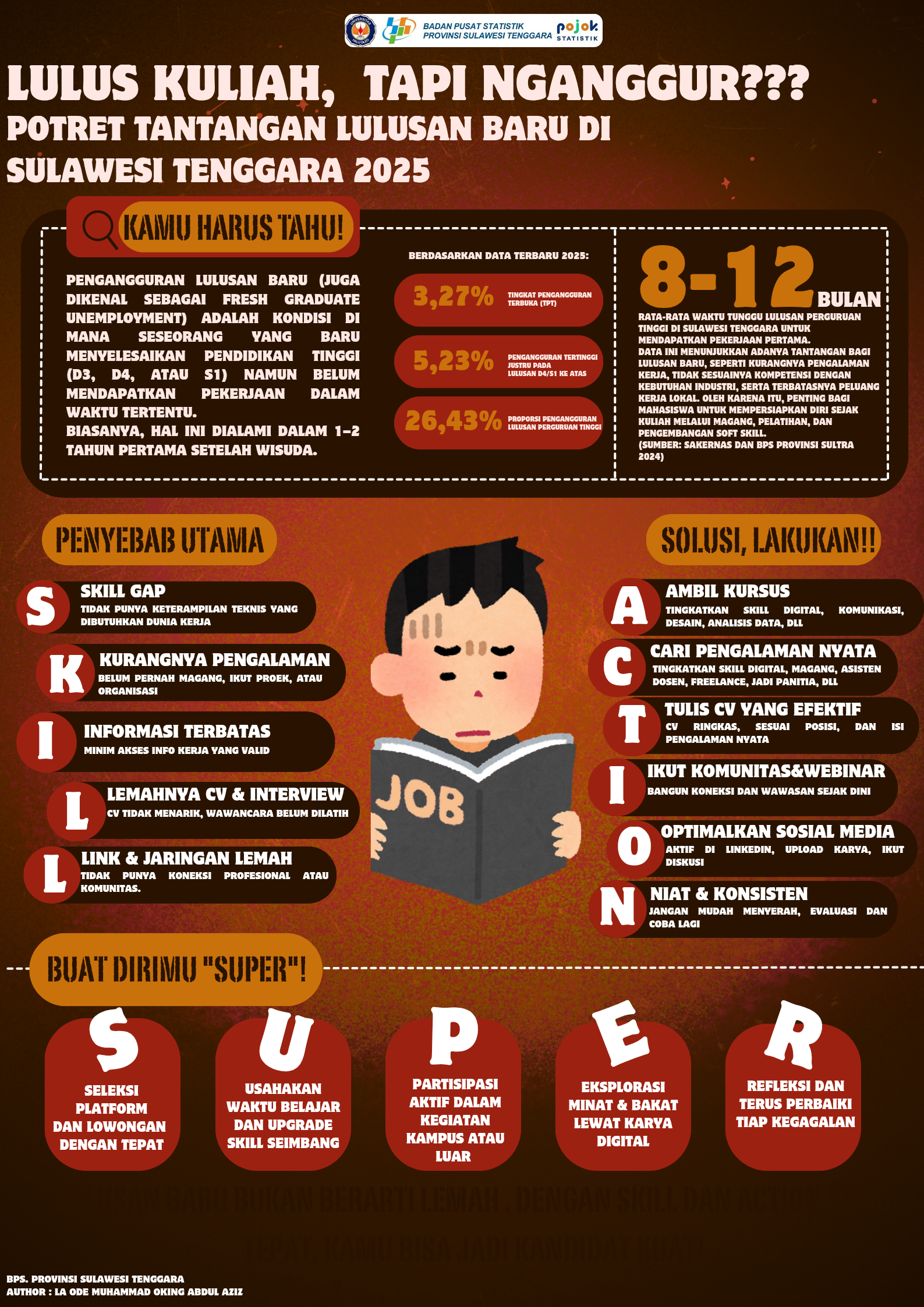 “Lulus kuliah bukan akhir perjuangan.” Infografis ini menyajikan gambaran nyata tantangan yang dihadapi lulusan baru di Sulawesi Tenggara tahun 2025. Mulai dari tingginya angka pengangguran...