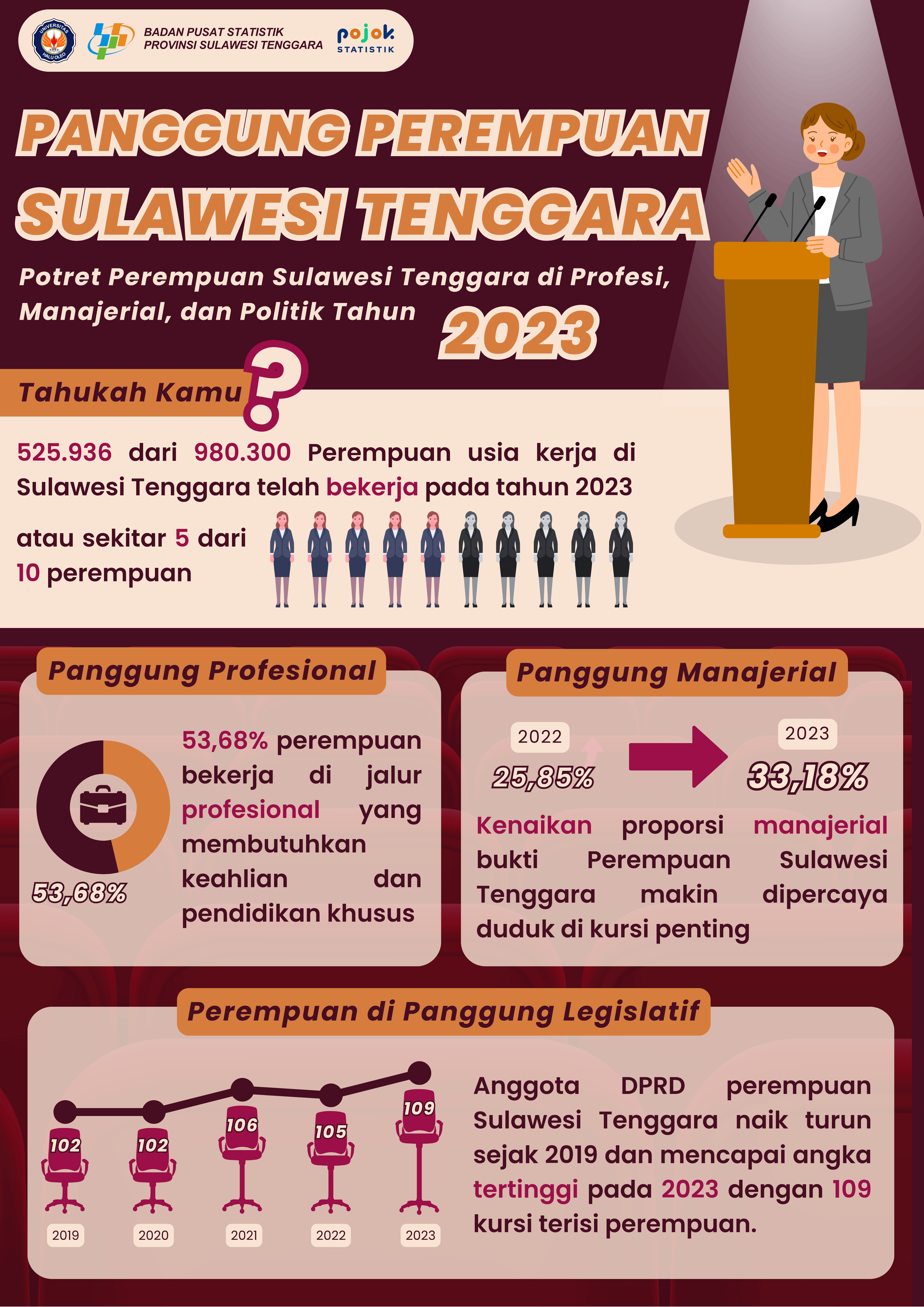 Perempuan Sulawesi Tenggara semakin mengambil peran penting di berbagai lini strategis. Di dunia kerja, sekitar separuh dari perempuan usia kerja telah aktif berkontribusi, terutama pada...