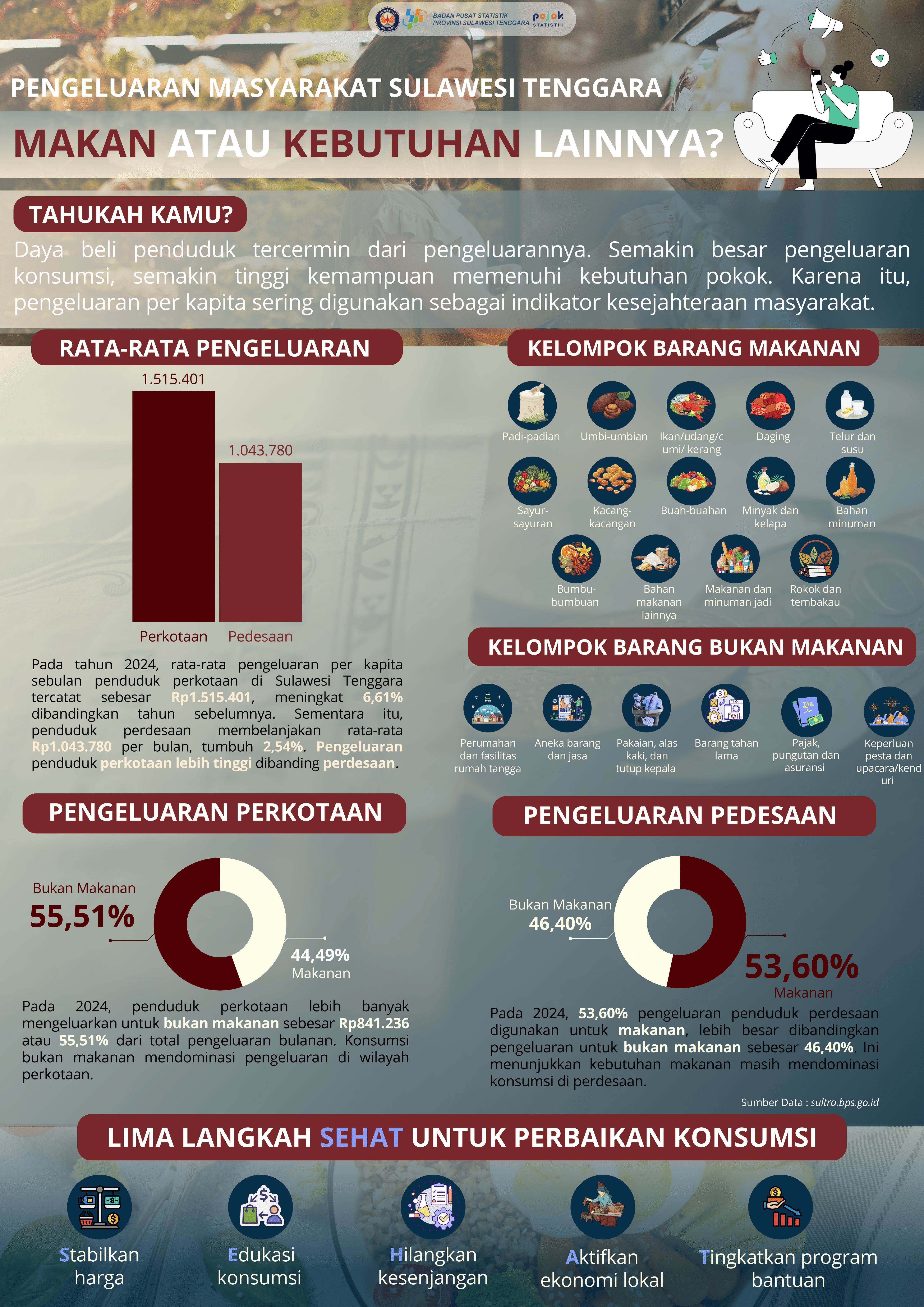 Sering kali kita berpikir bahwa pengeluaran masyarakat lebih banyak diarahkan pada kebutuhan pangan. Namun, kenyataannya pola pengeluaran penduduk di Sulawesi Tenggara menunjukkan perbedaan antara perkotaan...
