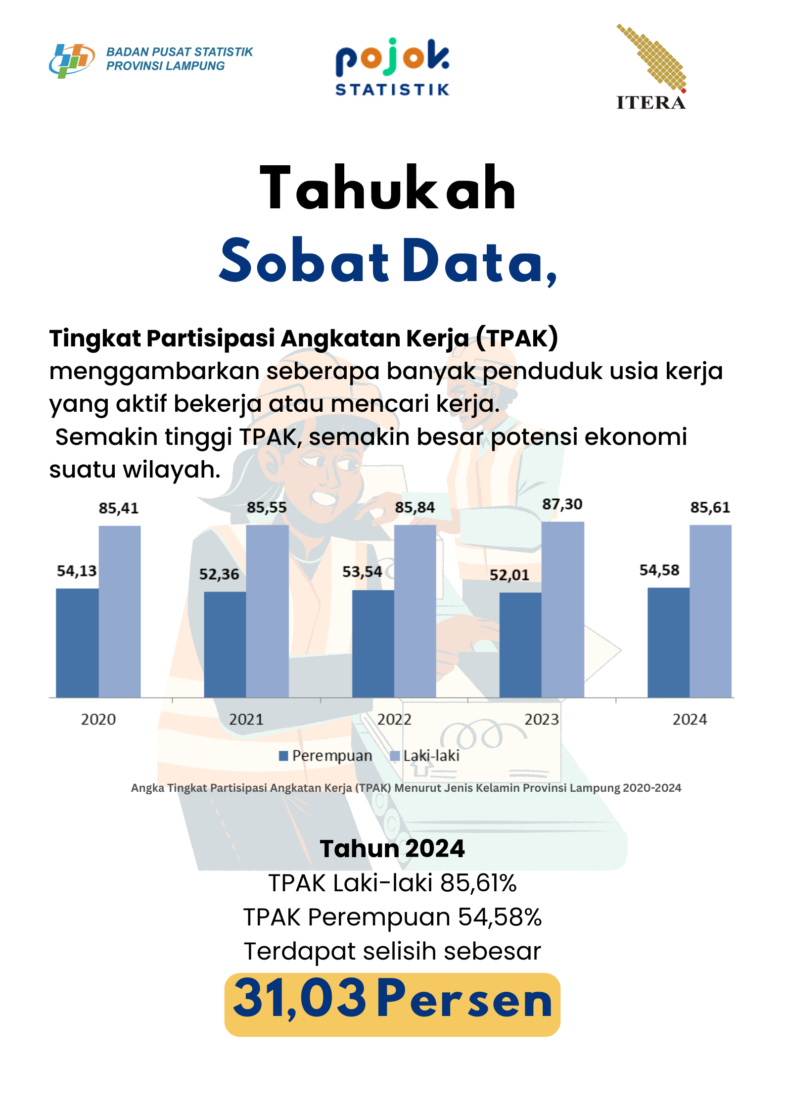 Halo sobat data! Tingkat Partisipasi Angkatan Kerja (TPAK) merupakan salah satu indikator penting yang digunakan untuk mengukur seberapa besar potensi tenaga kerja yang dimanfaatkan dalam...