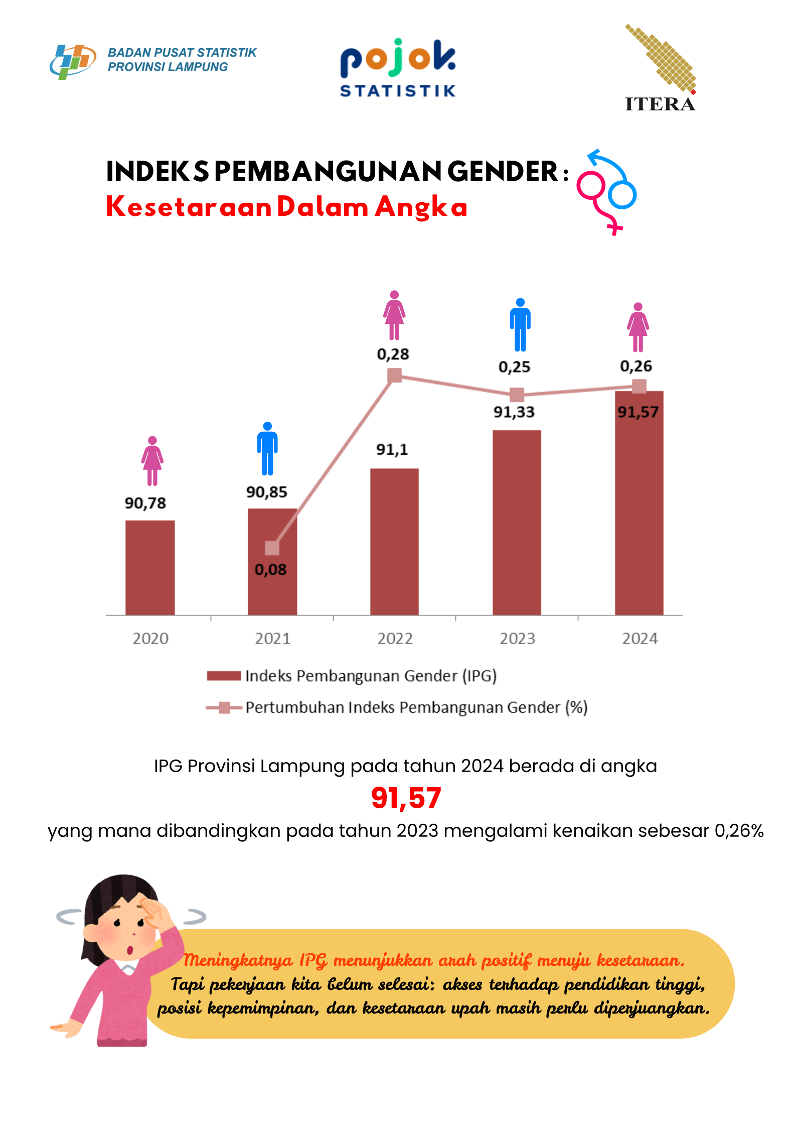 Indeks Pembangunan Gender (IPG) mengukur kesetaraan antara laki‑laki dan perempuan dalam pencapaian tiga dimensi utama: kehidupan layak (harapan hidup), pendidikan, dan pendapatan (IPM). IPG mencerminkan...