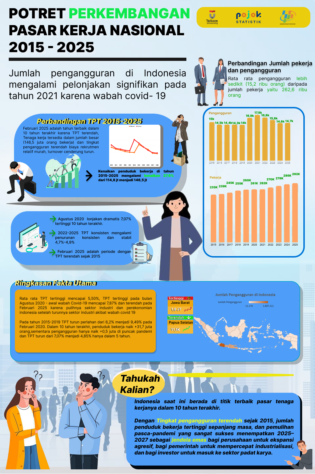infografis ini menyajikan bagaimana pandangan data terhadap isu pengangguran dan jumlah pekerja